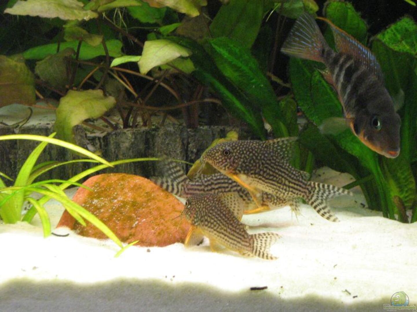 2/2 Thorichthys meeki (Feuermaulbuntbarsch) 1/3 Pelvicachromis pulcher (Purpurprachtbarsch) mit Nachwuchs 3 L134 Peckoltia sp. 6 Corydoras sterbai (Orangeflossen Panzerwels) 8 Ottocinclus 10 Puntius denisonii (Rotstreifenbarbe) 2/4 Schwertträgerzuchtformen (geplant noch 3 L075 Ancistomus sabaji)