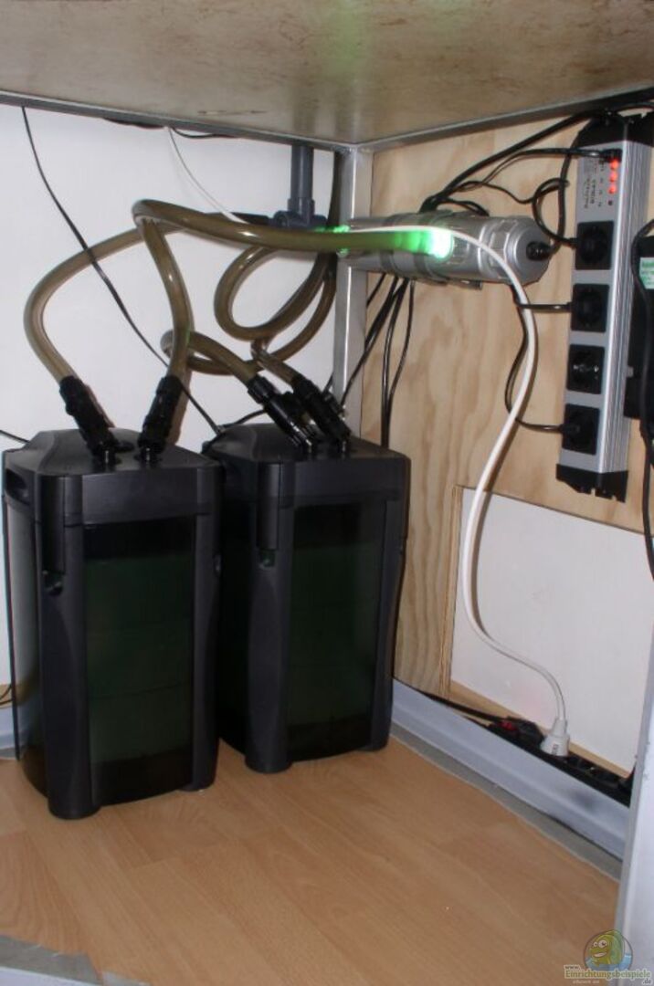 - An einem Cristal 500 hängt ein 18 Watt UV-Klärer von JBL. - ein ´ProfiLux Plus II´ regelt die Leuchtstoffröhren, Wassertemperatur und misst anhand der pH-Sonde den aktuellen PH-Wert. Wäre zwar nicht nötig gewesen war aber im Umfang mit dabei und dann nutzt man es auch gerne :-). - 300Watt Heizstab im ´Technikraum´ hinter Rückwand.
