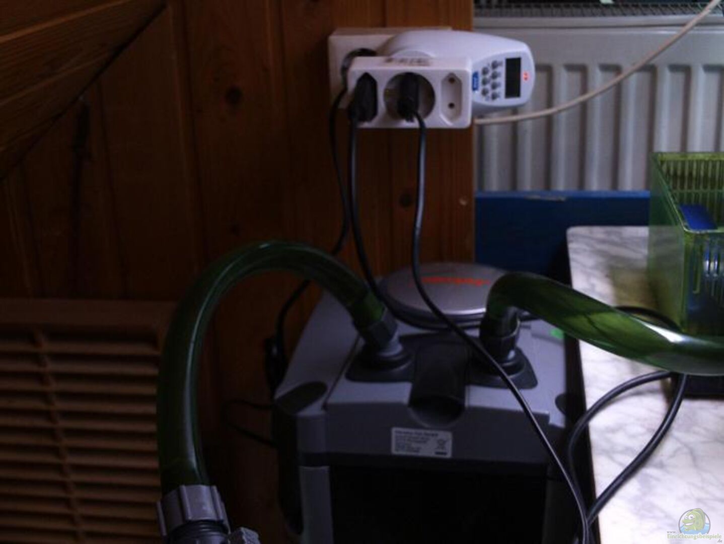 Eheim Stabheizer mit selbstabschaltung und 30Watt Sun Sun Strömungspumpe mit 1100L/H Fluval Innenfilter 2 sehr feine filterwatte und feines lavagestein ---> versteckt hinter der 3D Rückwand 9er LED MONDLICHTleiste mit Cipp direkt an der Röhre befestigt in 4 stufen dimmbar