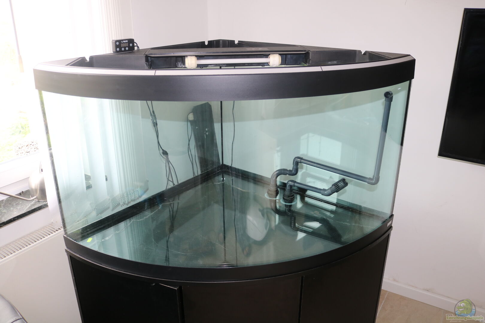 2 Bohrungen im Boden (1x Zulauf, 1 x Ablauf), 3 D Rückwand Ansaugung hinter der Rückwand, Zulauf vor Rückwand. Fläche hinter der Rückwand abgeteilt mit Filtermatten als Bio (Vor-) Filter.