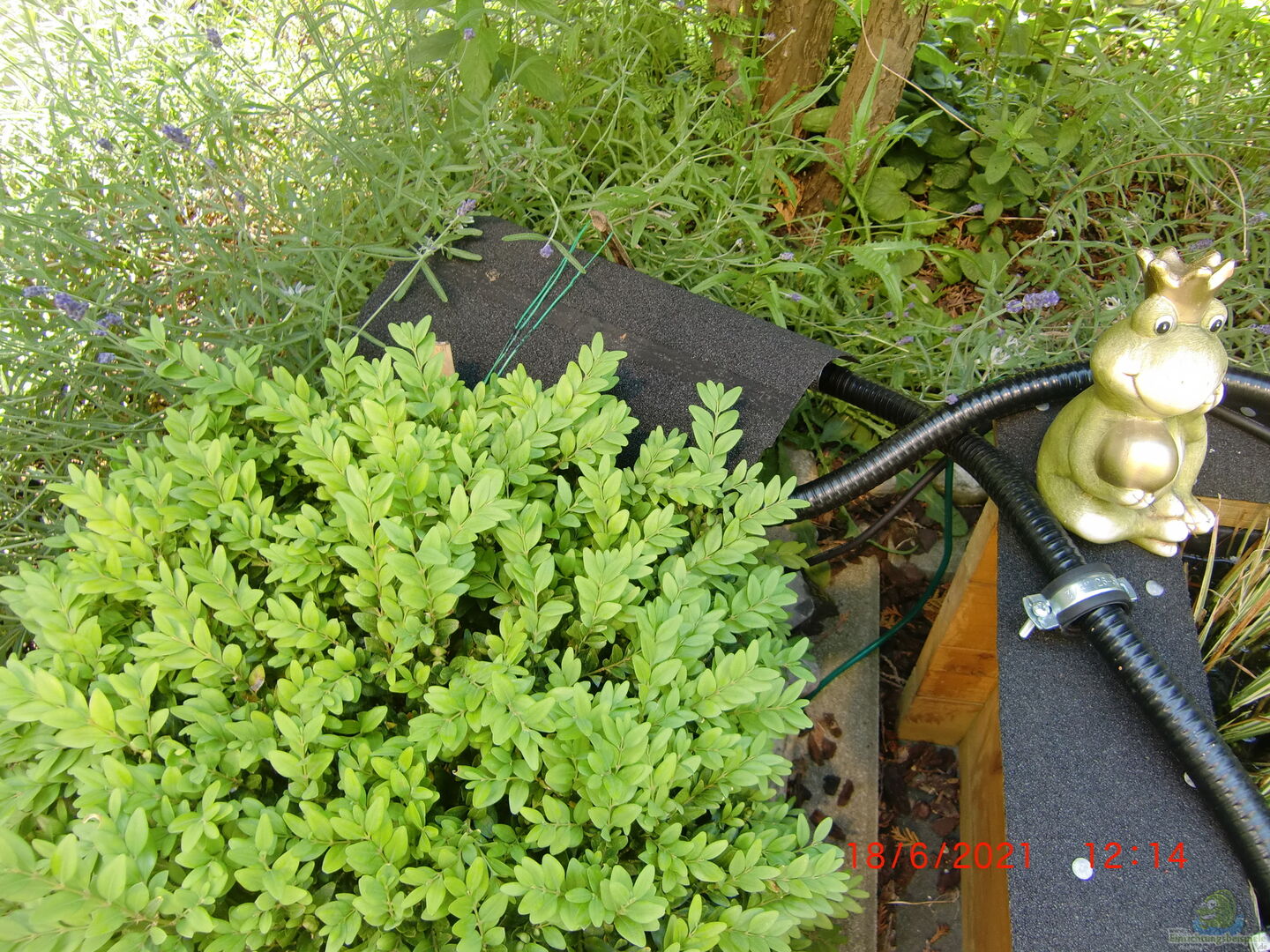 Tetra Durchlüfter mit ca. 400L/h mit Ausströmerstein läuft ganzjährig, im Winter Jebao Titan-Heizstab 200 Watt mit Außensensor, schaltet bei 0 Grad ein, November 2022 defekten Jebao-Heizer gegen Schego Titan Teichheizer mit 200 Watt getauscht Poolthermometer solarbetrieben gewechselt gegen analoges Thermometer, da Sonneneinstrahlung zu gering ist nachträglich eingebauter ??berlauf, da bei Regen der Teich abgeschöpft werden muss, damit das Wasser nicht zwischen Folie und obere Abdeckung [...]