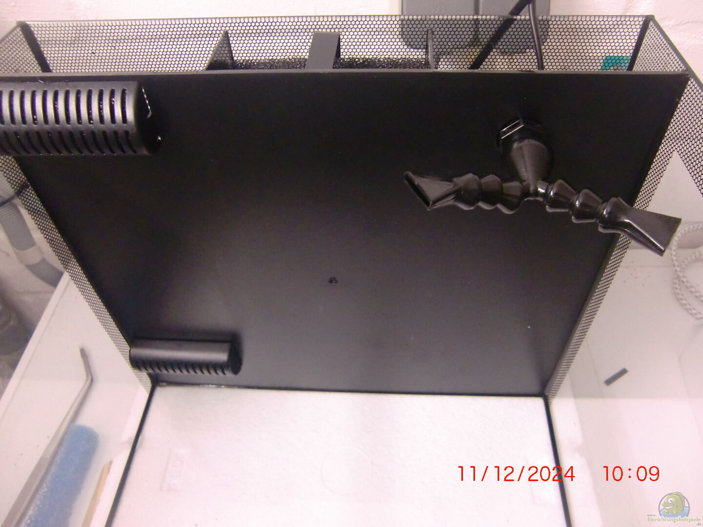 Heizung 50 Watt mit außen liegenden Regler und kleinem Heiz-Stab damit er in die Filterkammer passt, nur für den Notfall, Temperatur durch Zimmertemperatur meist konstant Durchlüfter Stein mit separater Pumpe die mehrere AQ versorgt, über Metallhahn regelbar, Pumpe befindet sich im Nebenraum, Wandbohrung für den Luftschlauch digitales Thermometer zur Kontrolle digitale Zeit-Schaltuhr für Beleuchtung