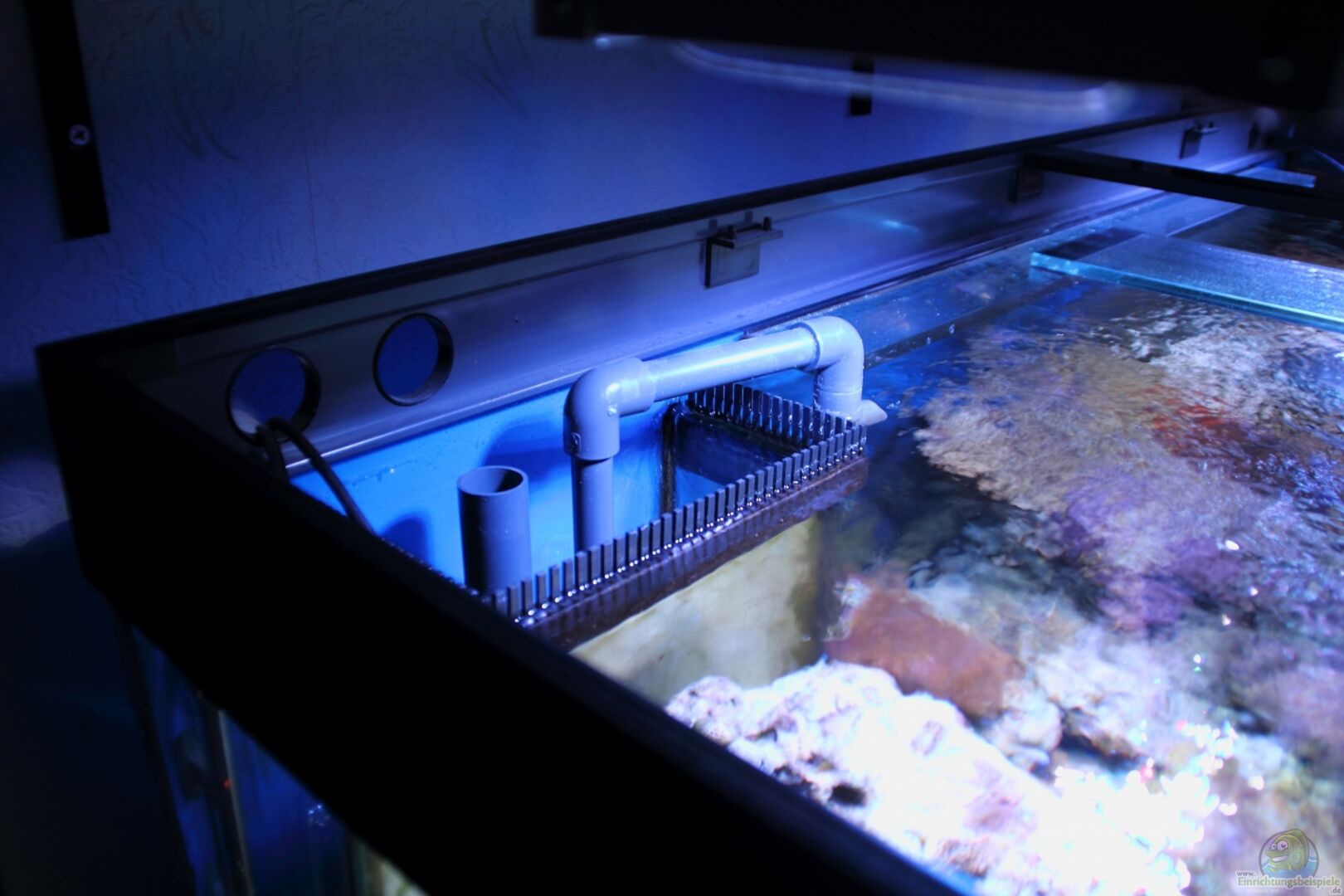 Strömungspumpen: 2 * TUNZE Turbelle nanostream 6055 - steuerbar für Aquarien von 40 - 500L Strömungsleistung: 1000 bis 5500l/h Energieverbrauch: 4 bis 18 W Ausgesteuert über ProfiLux Plus II Beide Pumpen arbeiten gegenläufig verlaufend in Sinuswellenform, sodass es eine permanent wechselnde Strömung ergibt. Wellendauer: 10 s Tagmodus: 7:30 Uhr bis 22:00 Uhr Intensität verlaufend in Sinuswellen: 20 % - 100 % Nachtmodus: 22:00 Uhr - 7:30 Uhr Intensität verlaufend [...]