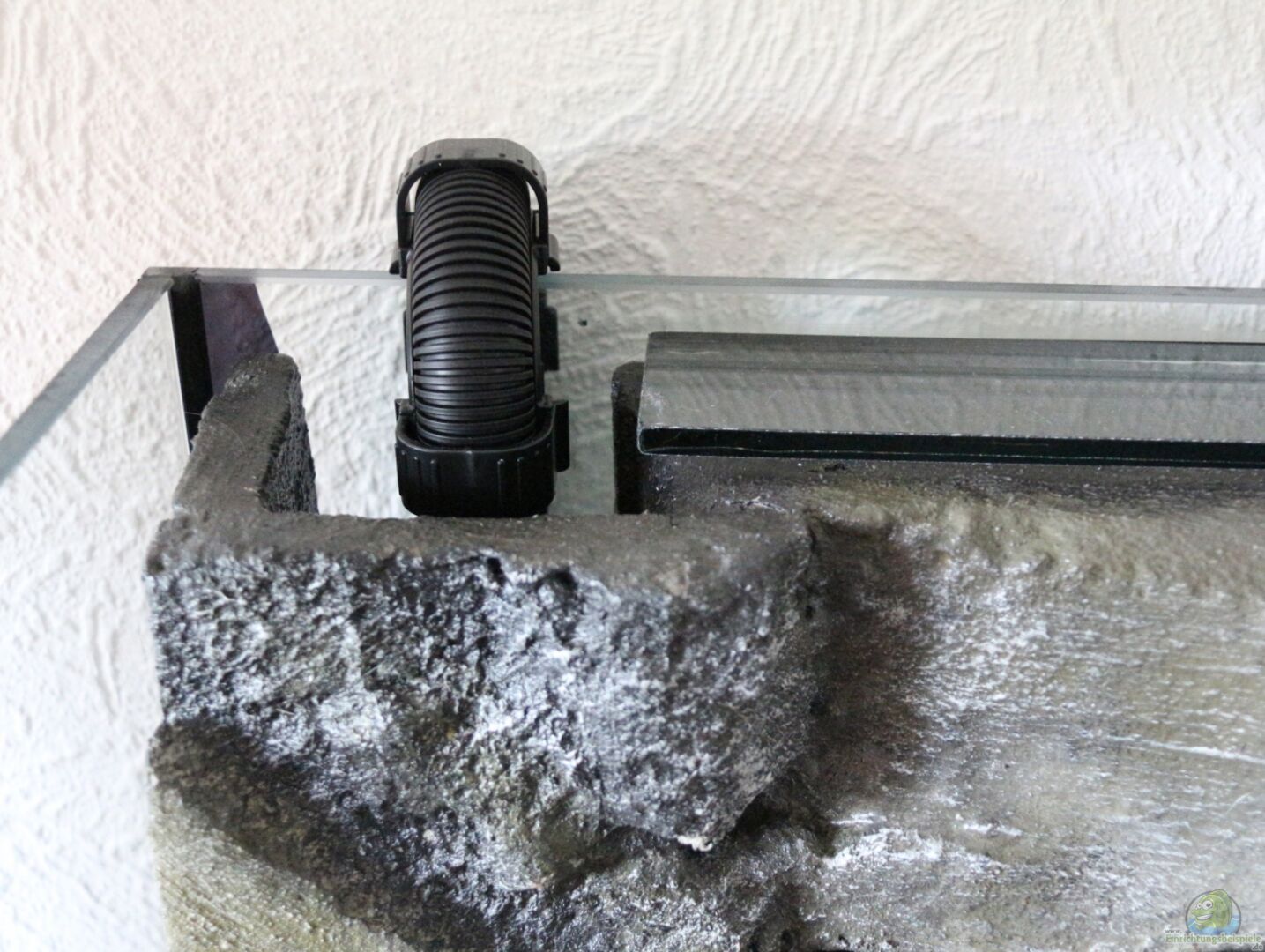 Heizstab Jäger für Becken bis 1000l. Der Heizstab wird per Zeituhr betrieben. Laufzeit 8:00 -20:00 Uhr geplant, habe den Heizstab jedoch noch nicht im Betrieb da die Temperatur relativ konstant 25-27° beträgt. Werde die Heizung wohl erst im Winter benötigen. Diffusor Eheim an einem der zwei Filterzuläufe gesteckt. Hoffe das hält, sonst ist Kleben angesagt. Im Unterschrank Steckdosenleisten mit Zeitschaltuhren für die elektrischen Geräte. Habe mir einen Reinigungshandschuh, [...]