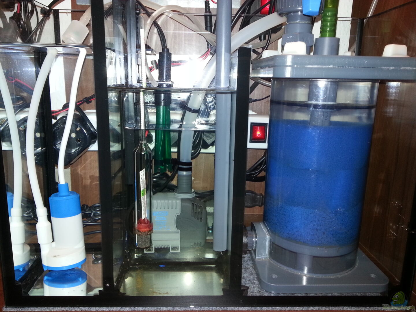 - 2 Strömungspumpen (Juwel Eccoflow 600, Leistung gesteigert mittels 1000er Impeller) 2x1000 Liter/Stunde - 1x Juwel Regelheizer 200W - Eigenbau Niveauregulierung - Sander Ozonisator Certizon C25 - Aqua Medic mV Controller - Aqua Medic pH Controller - Temperatursteuerung Lucky Reptile ThermoControl PRO II - Aqua Light Dosieranlage