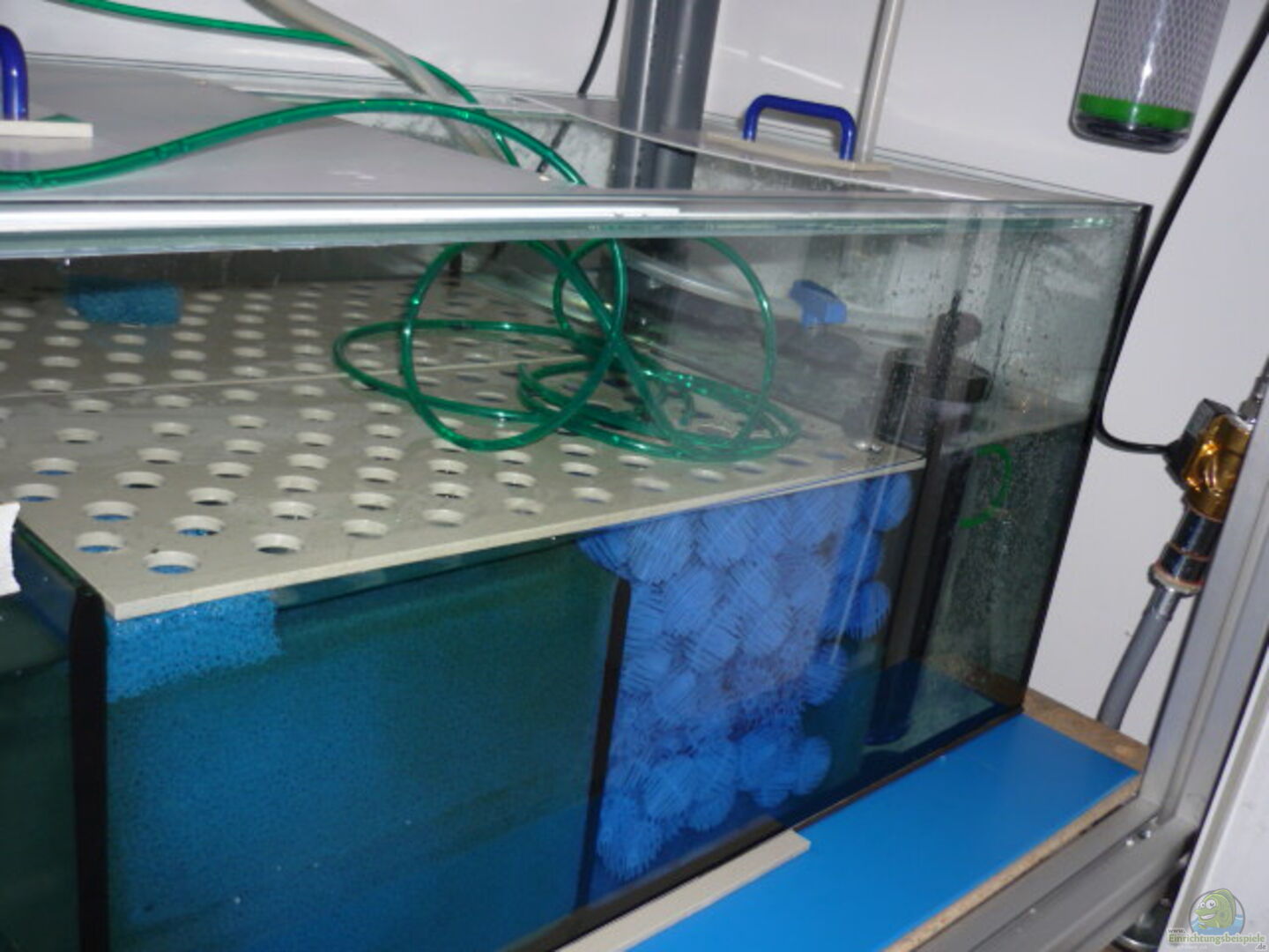 Automatischer Wasserwechsel. Gewitter- und Regensimulation 3 Bohrungen im Boden. (1x Vorlauf, 1x Rücklauf, 1x Notrücklauf) 2 Bohrungen in der ??berlaufkammer (1x Vorlauf, 1x Rücklauf=Bodenabsaugung)