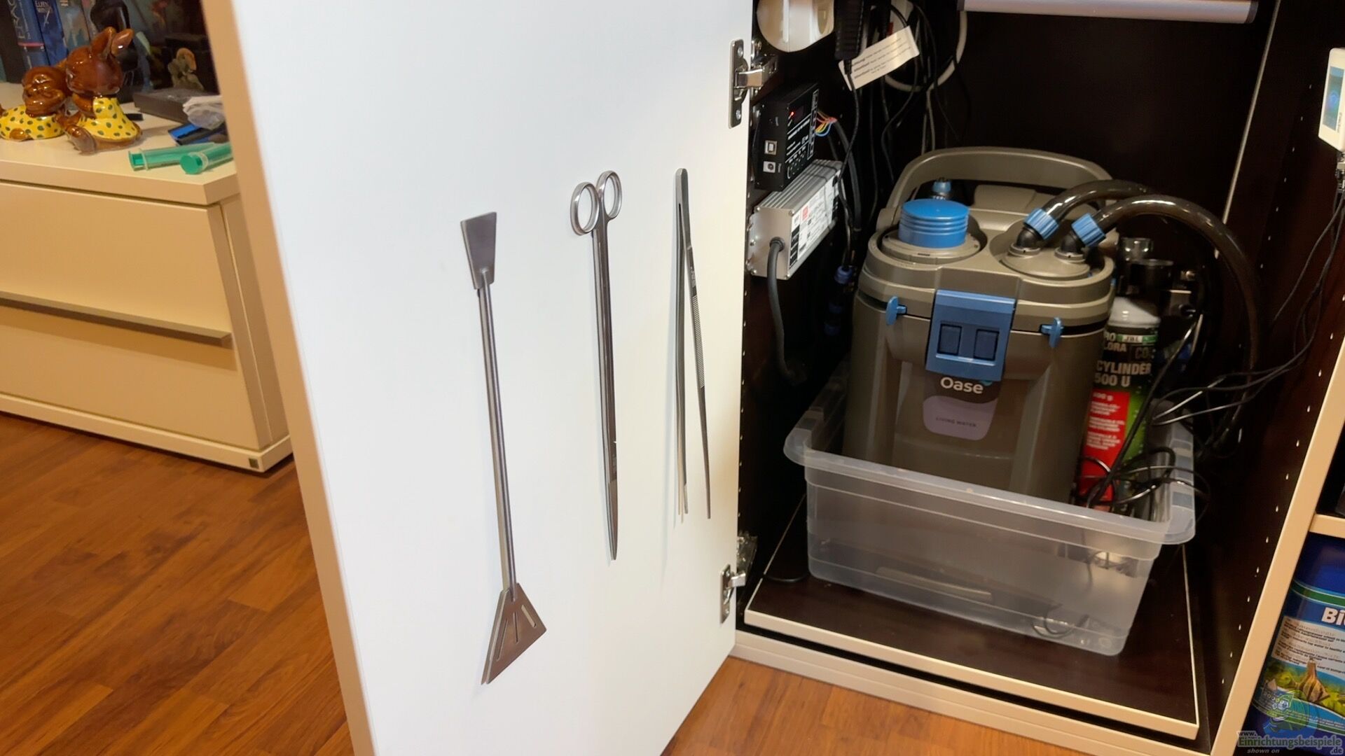 Die CO2 Zufuhr wird über die JBL Pro Flora CO2-Professional Set - System U gewährleistet. Diese pH-Wert gesteuerte CO2 Anlage sorgt für die optimale und gleichmäßige CO2 Zufuhr. Die Anlage ist temperaturkompensiert und arbeitet daher besonders genau. Die Zugabe erfolgt über den JBL Taifun CO2 Reaktor. Der Oase Crystal Skim 350 sorgt für eine klare Oberfläche. Er saugt kontinuierlich Pflanzenreste, Schmutzpartikel ab und beugt der Kahmhautbildung vor.