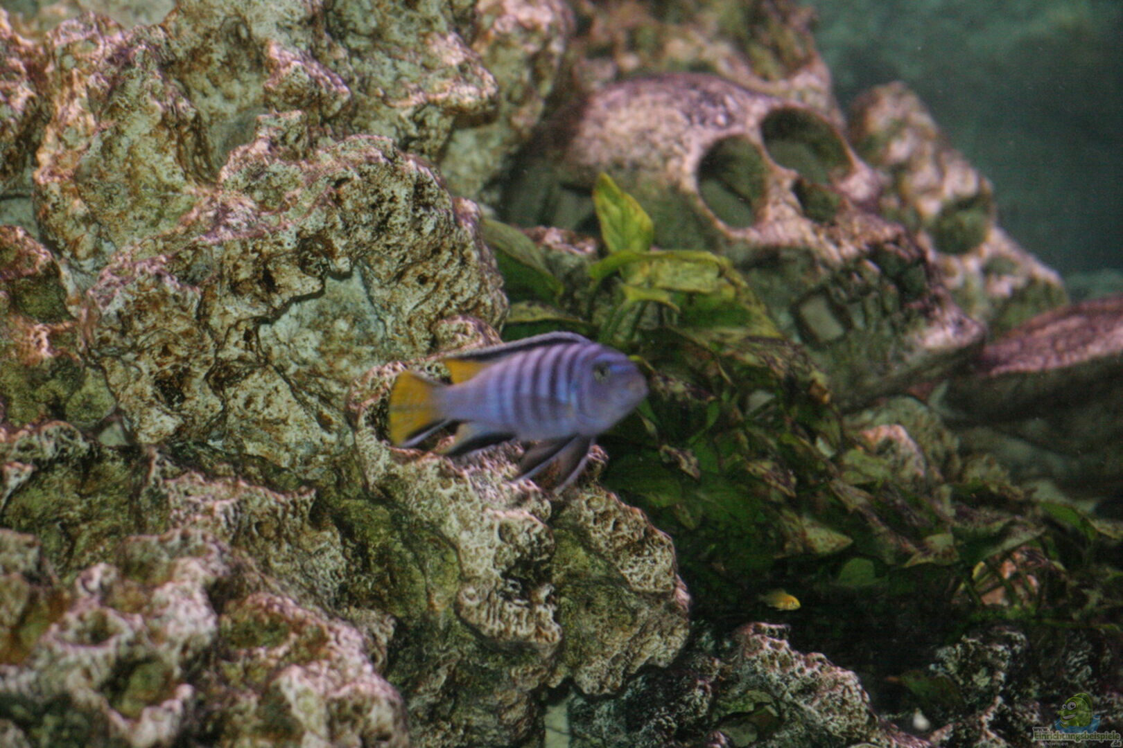 Besatz (alle als Jungfische eingesetzt); Metriaclima greshakei Makokola Reef 1/6 Labidochromis caeruleus yellow 2/8 (plus Nachwuchs) Cynotilapia afra edwardi 2/4 (plus Nachwuchs) Metriaclima estherae red red Minos Reef 1/5 Synodontis eupteris 2