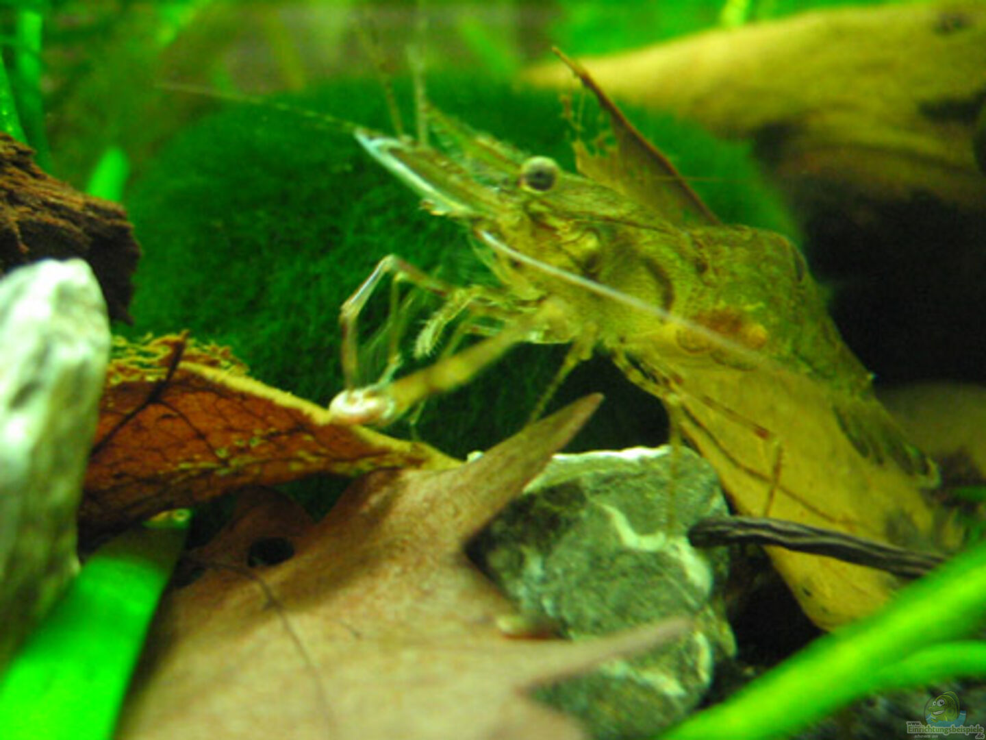 - Gruppe Ringelhandgarnelen (Macrobrachium). Genaue Anzahl schwer zu sagen, da 4 grö??ere Exemplare + Jungtiere. Schätzungsweise 9-11. - Posthornschnecken (Planorbarius corneus) - 1 Rennschnecke (Vittina semiconica)