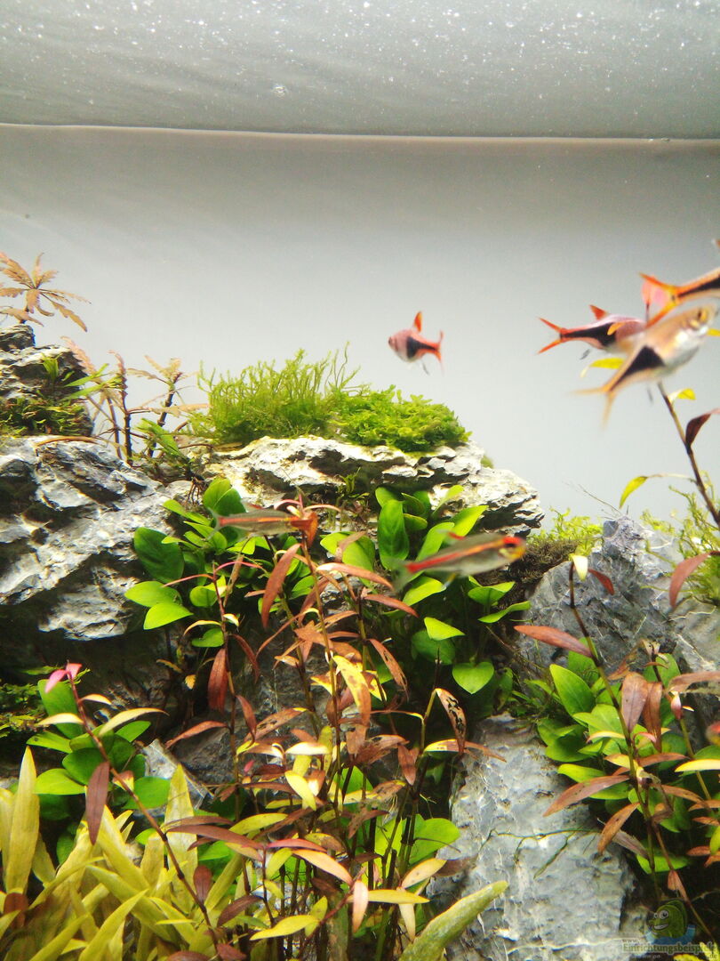13 Neocaridina heteropoda var. blau, rot, orange und gelb sind bislang eingezogen. Au??erdem 7 Keilfleckbarben (Rasbora heteromorpha) und 9 Glühlichtsalmler. ich bin happy mit diesem Besatz sehr harmonisch im Verhalten und Farben.
