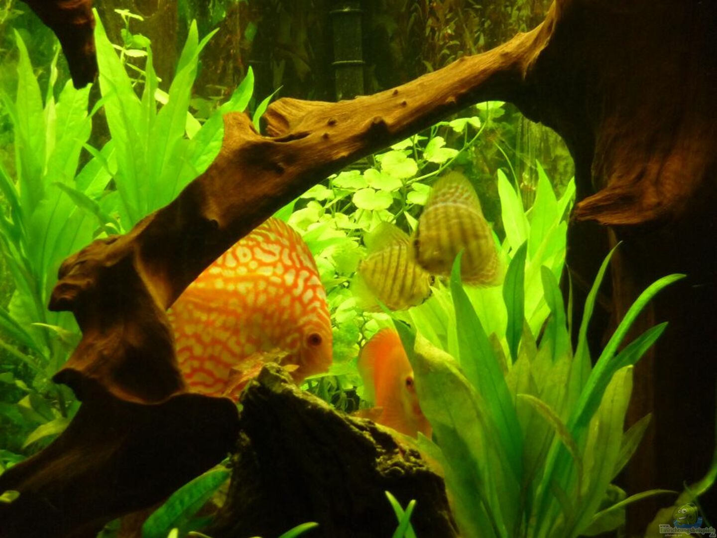 8 Siamesische Rüsselbarben 5 Panda-Panzerwelse 5 Diskusfische, zwei Grö??ere und drei Kleine. Die Grö??eren haben schon wunderschöne Fraben und die Kleineren werden bekommen Farbschläge von rottürkis und blautürkis. Ich verschone euch jedoch mit den einzelnen Farbschlag-Bezeichnungen, da es wahrscheinlich genau so viele Bezeichnungen wie Diskussfische gibt und jeder Züchter wieder eigene Namen vegibt und sowieso ist dass ein unendliches Gewirr aus Farbschlägen wo bald keiner mehr [...]