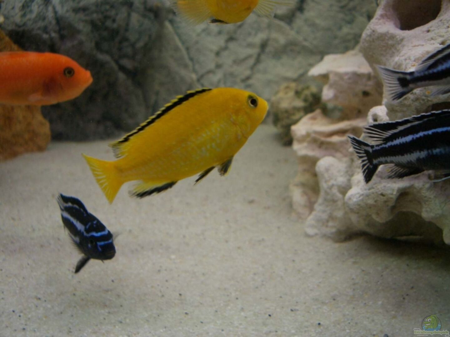1/5 Labidochromis caeruleus 1/4 Melanochromis maingano 1/4 Pseudotropheus estherae red / red 1/3 Ancistrus dolichopterus (die gehören hier zwar nicht rein, ich habe trotzdem das Gefühl, dass sie sich bei den Mbunas wohlfühlen.)