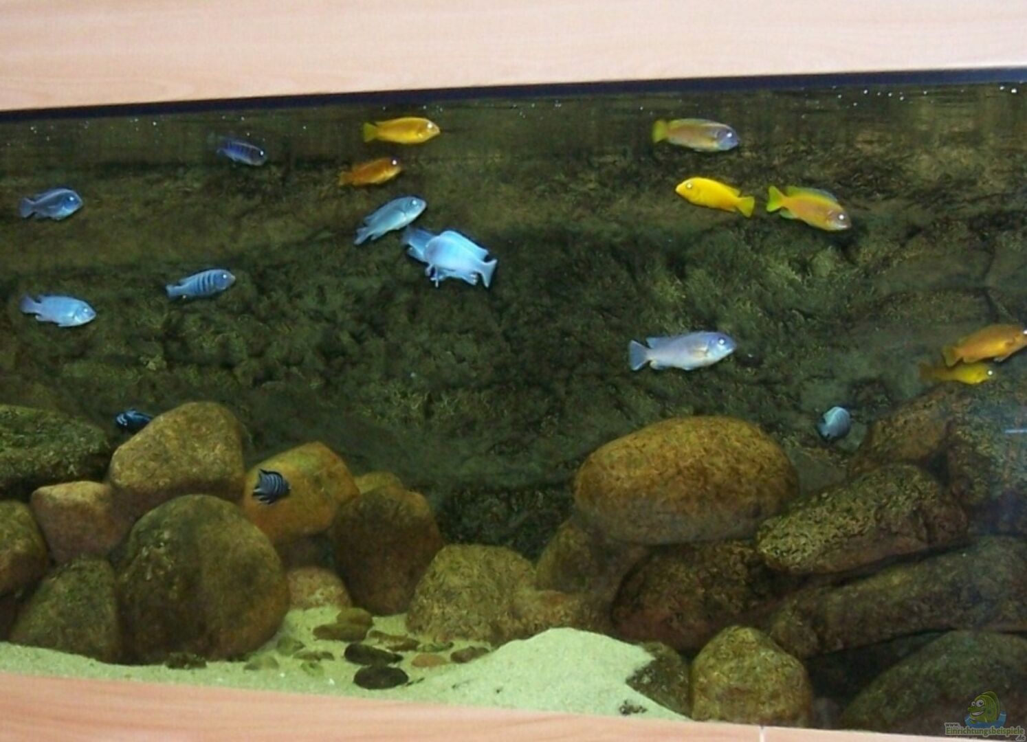 Beckentyp Bioplast, 3D Rückwand Malawi von Back to Nature, links und rechts Slimline Back to Nature eingeklebt.Stabiler Unterschrank vom Tischler mit 4cm starker Bodenplatte.