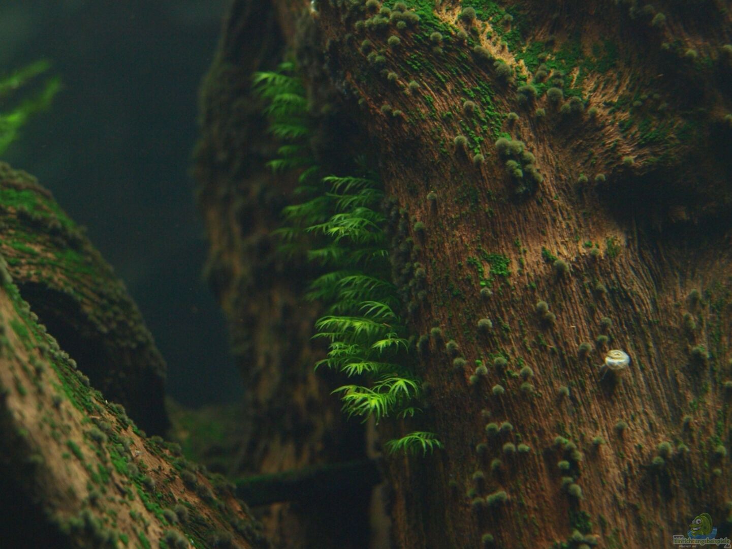 gro??e schwarze Flusskiesel Moorkienwurzel aus drei einzelnen Teilen mittels Kabelbinder verbunden Dracaena -Happy Bamboo oder auch Glücksbambus zum verstecken des Filtereinlaufs, zunächst versuchsweise, um zu sehen ob der nicth evtl. zu gammeln anfängt. Mittlerweile stehen die drei Stämmchen schon 5 Monate im Becken. Da das Becken ohne Abdeckung läuft kann die Dracaena Triebe ausbilden, zum Teil sogar unterhalb des Wasserspiegels