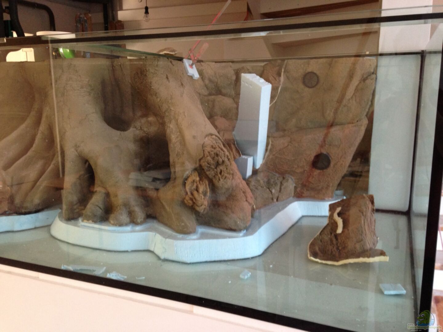Das Becken ist nach unseren Ma??en gefertigt worden und hat einen eingebauten 4 Kammer Bio Filter. Es ist in die Wand eingelassen und steht im gleichen Raum wie die Heizungsanlage, womit wir problemlos das Becken (solargestützt) heizen können. Wasserablauf, Zulauf und Waschbecken sind direkt am Becken installiert. Als Unterbau habe ich die Wände mit Kalksandsteinen geklebt und mit einer dicken Betonplatte abgeschlossen. Der obere Teil des Aquariums ist mit drei Wie??lacktüren abgehangen. [...]