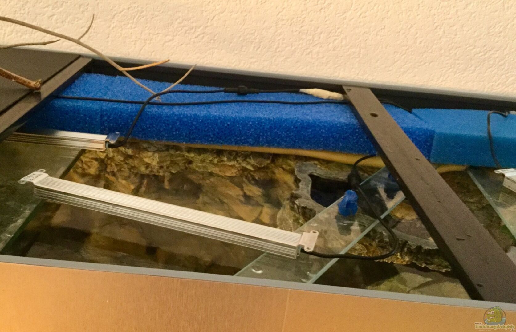 2 Heizstäbe (je 100 W), integriert im Innenfilter (siehe oben) Strömungspumpe Tunze Turbelle nanostream 6045 (regulierbare Stömungsleistung von 1500 bis max. 4500 l/h) pH meter sera precision (mobile pH-Messelektrode, im Becken fixiert)