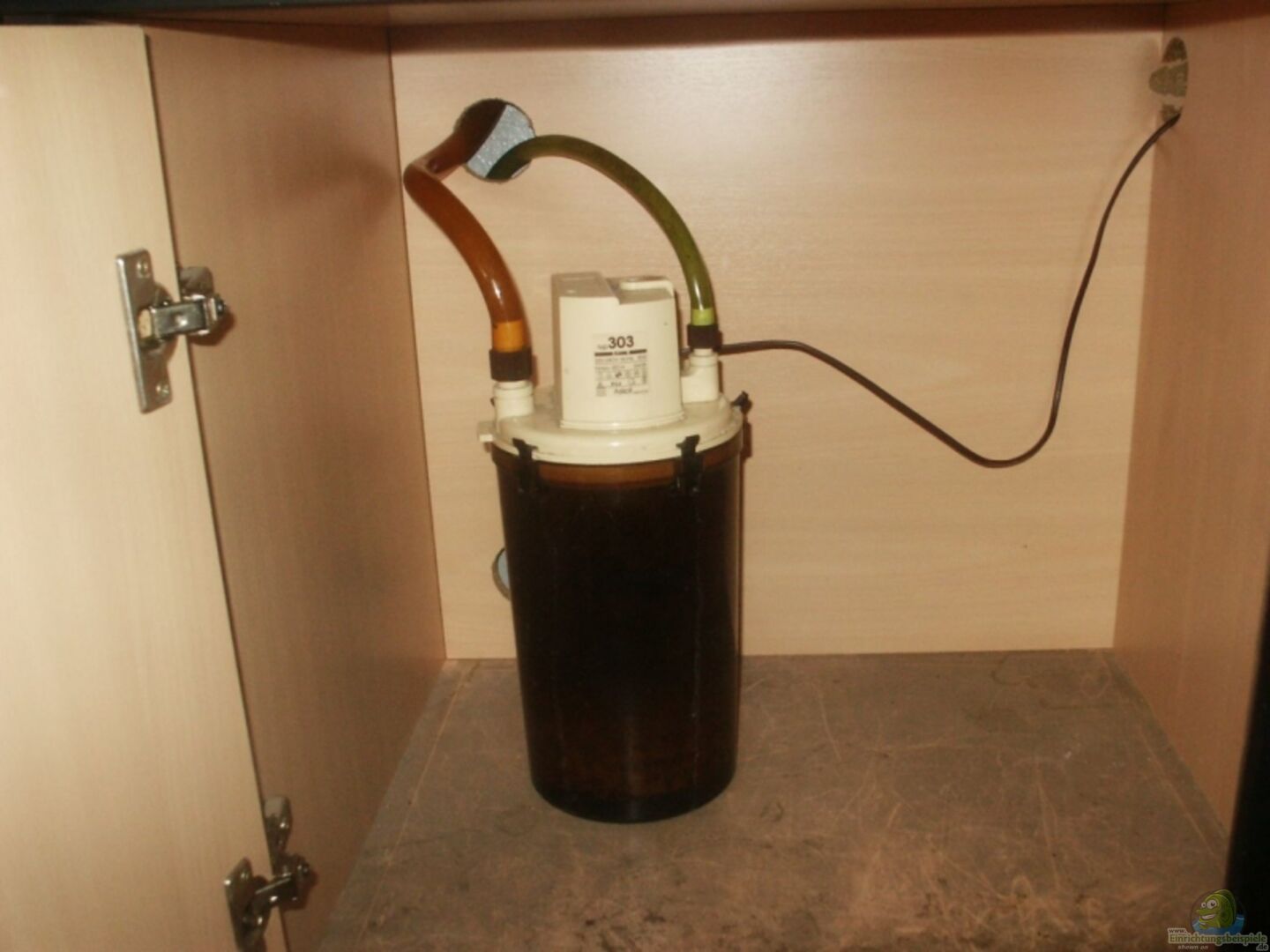 200 W Stabheizung von Visi Therm Resan Strömungspumpe Sp - 2500 L mit 1400 L/h bei 18 W die Tagsüber 15 min pro Std. dazugeschaltet wird um den Dreck aufzuwirbeln. Nachts bleibt sie aus um die Tiere nicht zu stöhren. In Planung : Filterbecken oder Filtertonne im Unterschrank der den Fluval Aussenfilter ersetzen soll um ein grö??eres Filtervolumen zu bekommen.