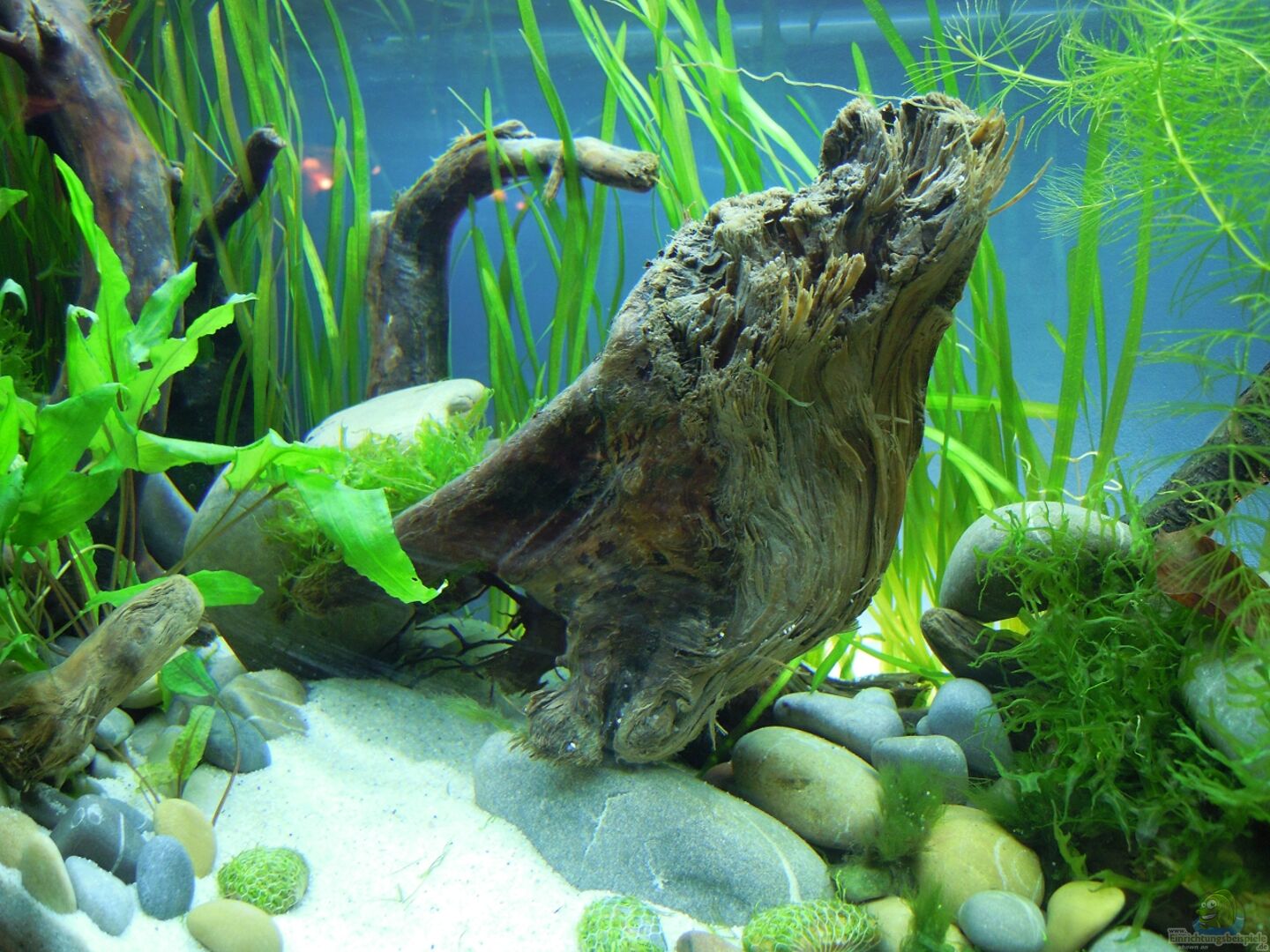 Selbst gesammelte Wurzeln Diese habe ich am Seeufer gesammelt, die Rinde entfernt und mehrere Monate gewässert. Zwischendrin wurden sie immer wieder mit kochendem Wasser übergossen, geschrubbt und weiter gewässert. Flusskiesel und Steine Unterschiedliche Grö??en: Die Gro??en zum Beschweren der Wurzeln und die kleineren als Verstecke/Ablaichhilfe für Bodenbewohner.