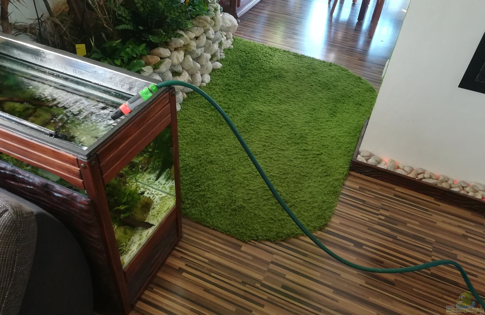 Ein Heizstab von Eheim ist versteckt in der 2 Filterkammer. Die Hauptpumpe von TUNZE ist in der selben Filterkammer, wie der Heizstab gelagert. Von dort aus wird das gefilterte Wasser zurück ins Becken befördert. Eine alte TUNZE Strömungspumpe ist auch unter dem Steinaufbau versteckt. Sie läuft mit Zeitschaltuhr zu unterschiedlichen Zeiten und sollte Ebbe und Flut simulieren. Ein Roboter ist gleich neben dem Aquarium stationiert, der per WLAN steuerbar ist. Damit überwache ich in Abwesenheit [...]