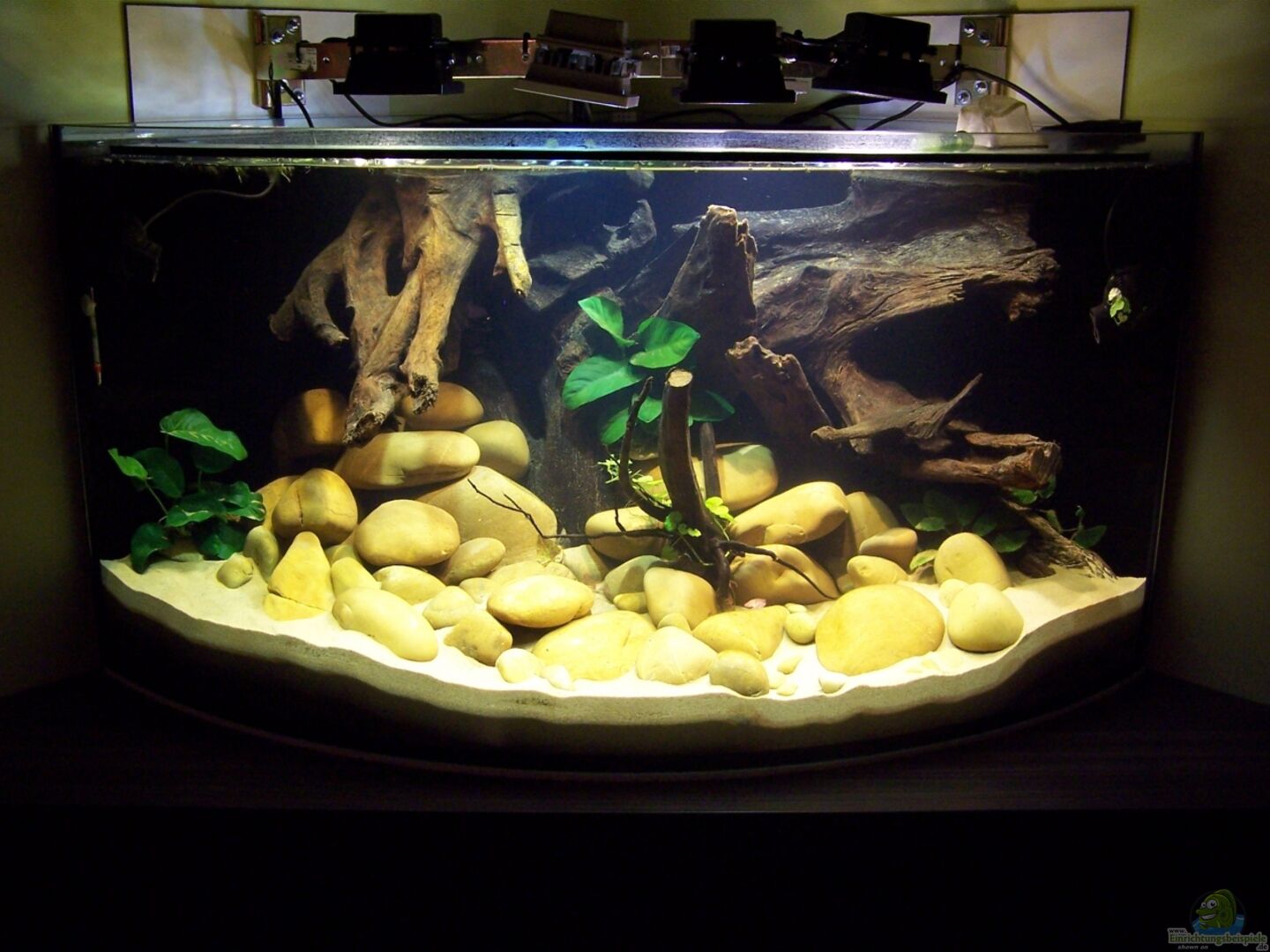 Nach dem auflösen meines Rio125 Gesellschaftsbeckens wollte ich etwas völlig neues gestallten. Dazu hatte ich folgende ??berlegungen. - Das Becken sollte wesentlich grö??er und ein Eckbecken werden. - Das Becken sollte im Verhältnis zur Grö??e kostengünstig realisiert werden. - Das Becken sollte recht energiesparend betrieben werden. - Das Becken sollte recht pflegeleicht sein. - Das Wasser sollte nicht mit Pflegemitteln egal welcher Art angereichert werden. - Es sollte ein Artenbecken [...]
