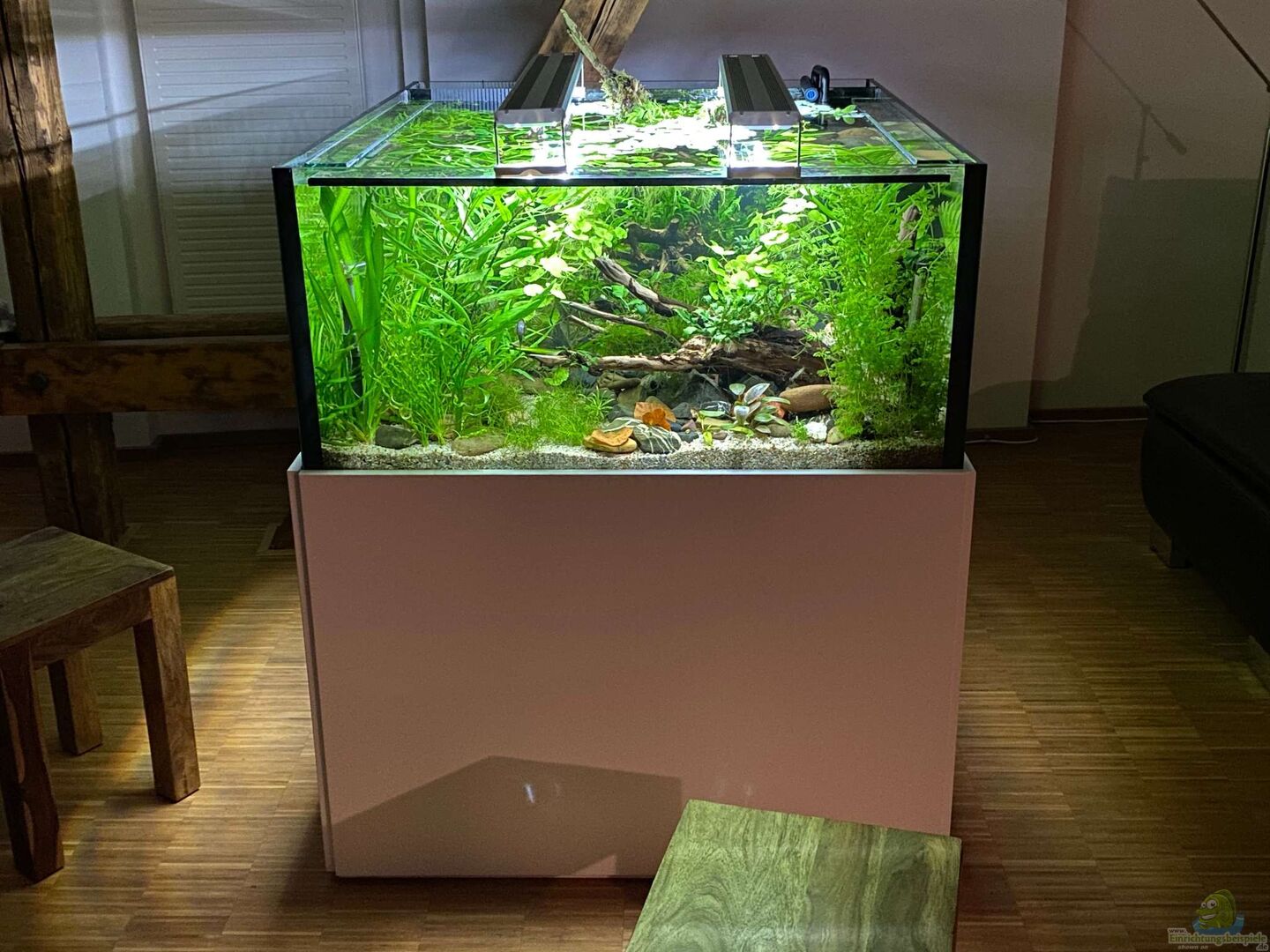 3-teilige Filterkammer durch schwarze Milchglasscheibe mit ??berlauf an kurzer Seite ca 15 cm tief. Rückförderung durch Pumpe. Gegenüber 2 Bodenbohrungen in den Ecken für Zu- und Ablauf für externen Filter. Konzept: Raumteiler, beide lange Seiten und 1 kurze Seite in Wei??glas, die andere kurze Seite Floatglas, 10 mm. Steht auf angefertigtem Unterschrank. Die Breite von 100 cm soll dazu beitrage, dass Aquarium so einzurichten, dass man von drei Seiten reinschauen kann, aber nicht komplett [...]