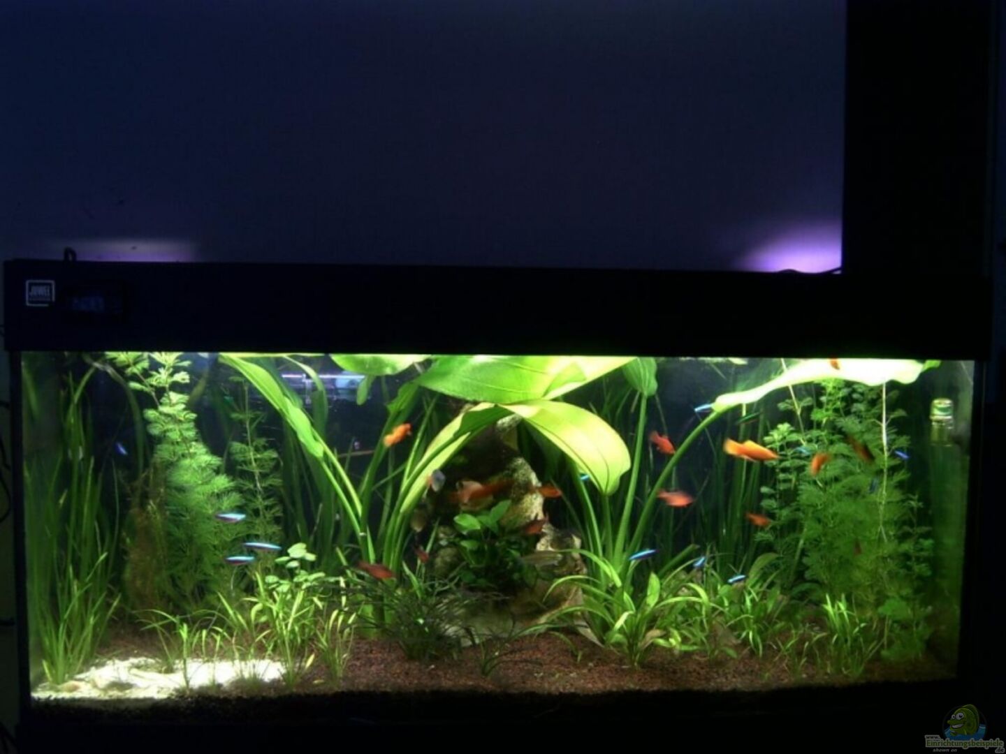 Selbstgebaute Bio CO 2 Anlage, bestehend aus einem 5 Liter Behälter mit 4 Litern Wasser, 1000 Gramm Zucker und 7 Gramm Hefe, 1 Wasserflasche ist als Ausgleichsbehälter dazwischengeschaltet, als Auflösungsgerät benutze ich die CO2 Junior Wanne, eine Füllung bietet CO 2 für ca. 4 Wochen. Messung des CO 2 Gehaltes mit Dupla CO 2 Dauertest.