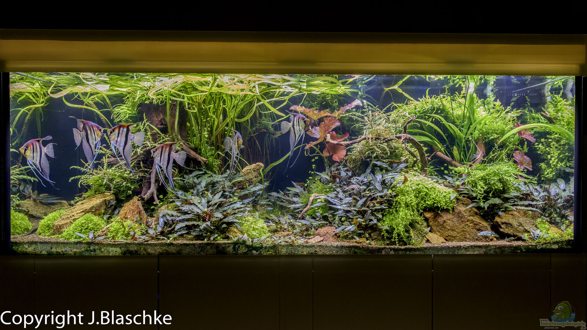 Sonderanfertigung der Firmen Aquariumbau Graf / Aquarium West München; Front- und Seitenscheiben in Wei??glas 15mm, Schwarzglasschacht hinten rechts (38 cm lang x 13 cm tief) mit - 4 Bohrungen für 2x Filterabläufe/-zuläufe, - 2 Bohrungen für Wasserüberlauf, Alu-Rahmen-Unterbau; Verkleidung des Unterbaus mit wei?? lackiertem Glas; Zeitgesteuerter Zulauf von Roh- und Osmosewasser (Durchlaufbecken),