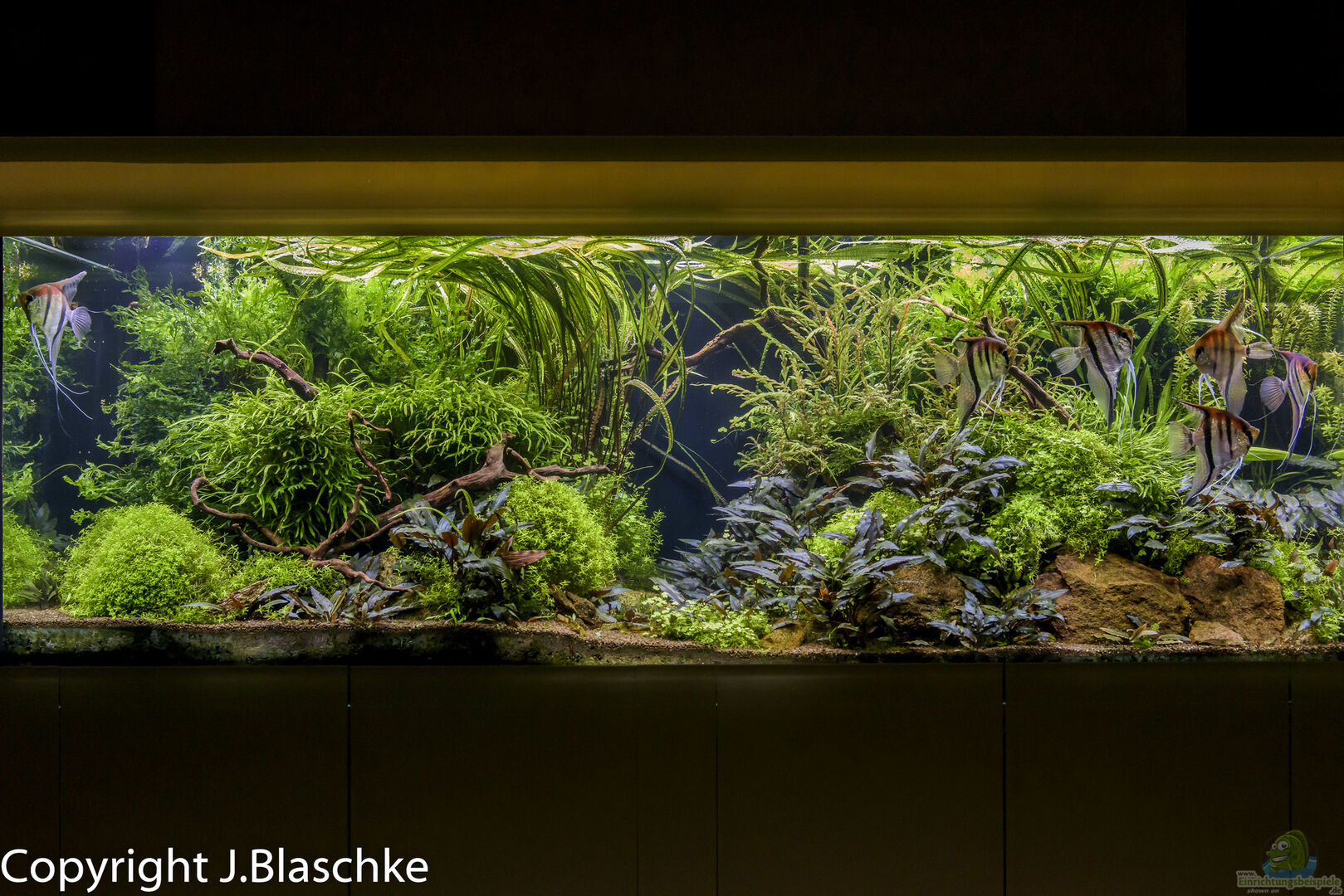 Sonderanfertigung der Firmen Aquariumbau Graf / Aquarium West München; Front- und Seitenscheiben in Wei??glas 15mm, Schwarzglasschacht hinten rechts (38 cm lang x 13 cm tief) mit - 4 Bohrungen für 2x Filterabläufe/-zuläufe, - 2 Bohrungen für Wasserüberlauf, Alu-Rahmen-Unterbau; Verkleidung des Unterbaus mit wei?? lackiertem Glas; Zeitgesteuerter Zulauf von Roh- und Osmosewasser (Durchlaufbecken),