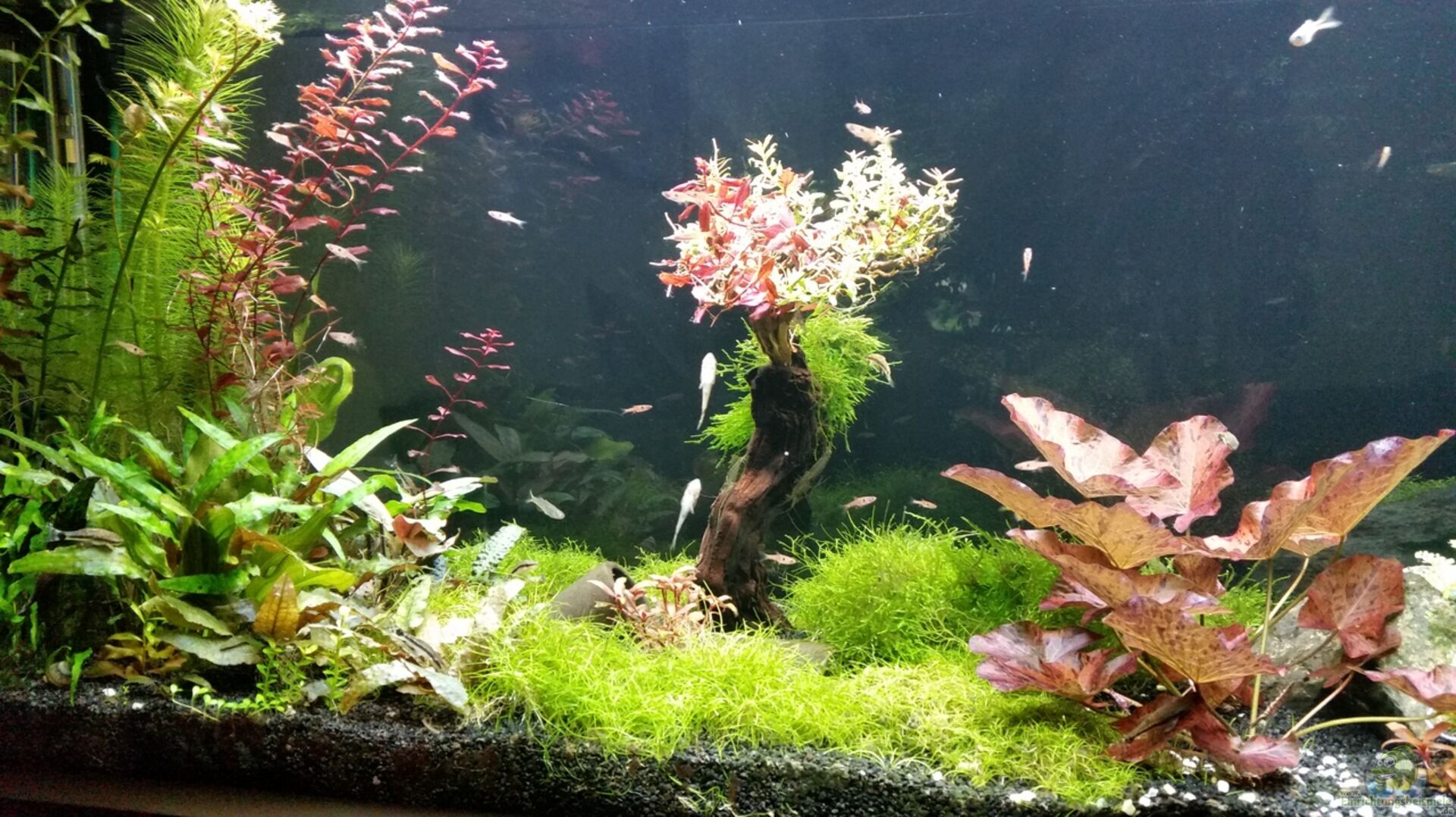 -Aquarien Anfertigung mit 1 cm dickem glas. -Bohrung für Filter und Kabel. -Schiebe Abdeckung aus Glas und wei??er Folie. Durch die Einfassung der Schieber, läuft kein Schwitzwasser au??erhalb runter. -Unterschrank Braun und mit Kiesleiste. -Von 3 Seiten einsehbar. -3 Glasquerstreben zum aufsetzen der LEDs