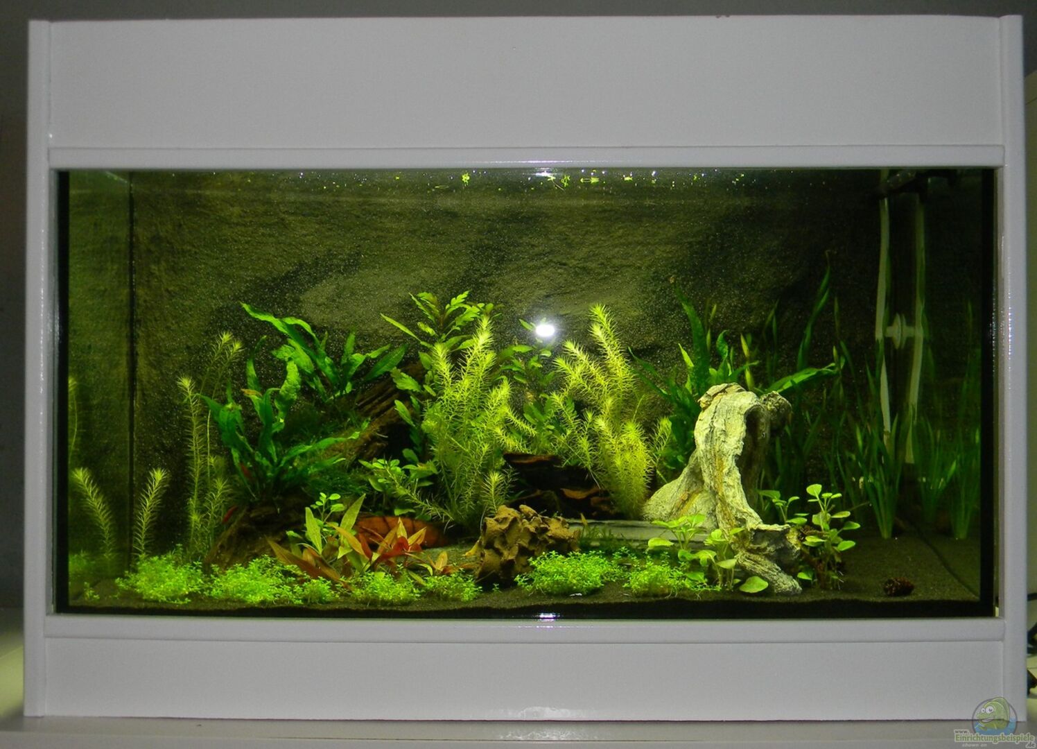 Rückwand Marke Eigenbau aus Strukturiertem Plexiglas (2mm) und Styropor. Auf einer Seite rund eingeklebt, um die Technik zu verstecken. Beschichtet mit gefärbtem Zement und Sand. Danach versiegelt mit Epoxidharz. Um das Becken in die bestehenden Schlafzimmermöbel zu integrieren und zusätzlich noch ein bissel Energie zu sparen, wurde ein kompletter wei??er Holzrahmengebaut und an vier Seiten zusätzlich Styropor eingebracht, sodass mein Heizer maximal 30 Minuten am Tag anspringt.