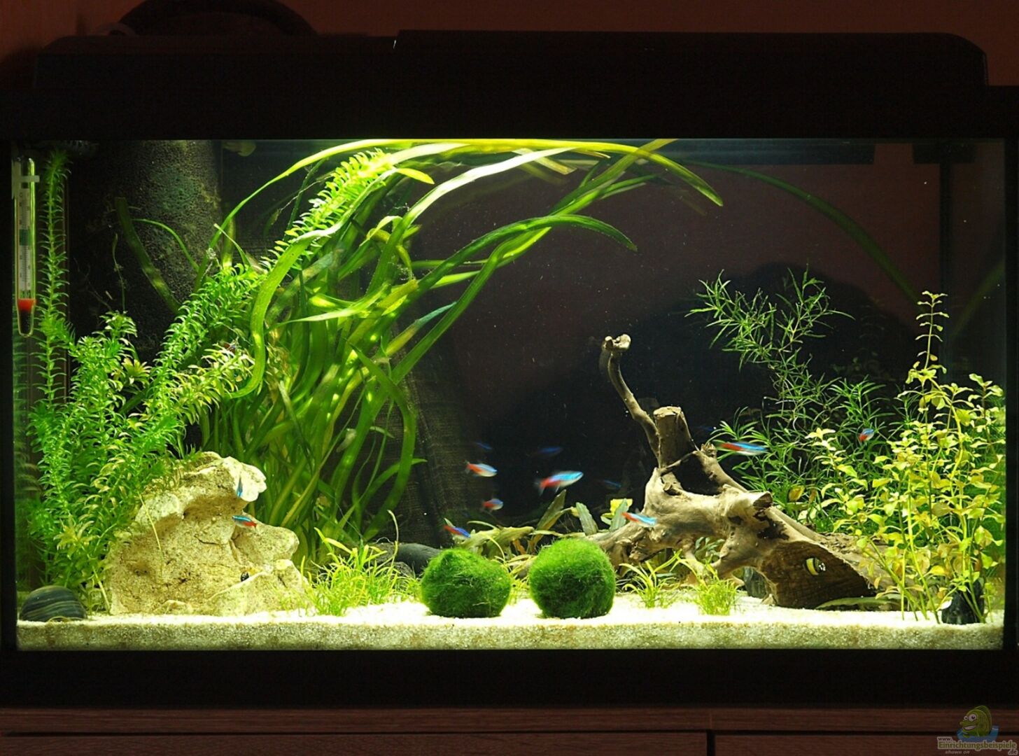 Unser erstes Becken. Komplettset MP Aquapro 60 stehend auf 2mm Thermomatte. Lange beim Hornbach drum herum geschlichen und dann irgendwann einfach mal mitgenommen. Eigentlich sollte es zuerst der Aufzucht von Urzeitkrebsen dienen, aber hierfür läuft nun seit ca. 3 Wochen ein kleines 30er Becken ein.