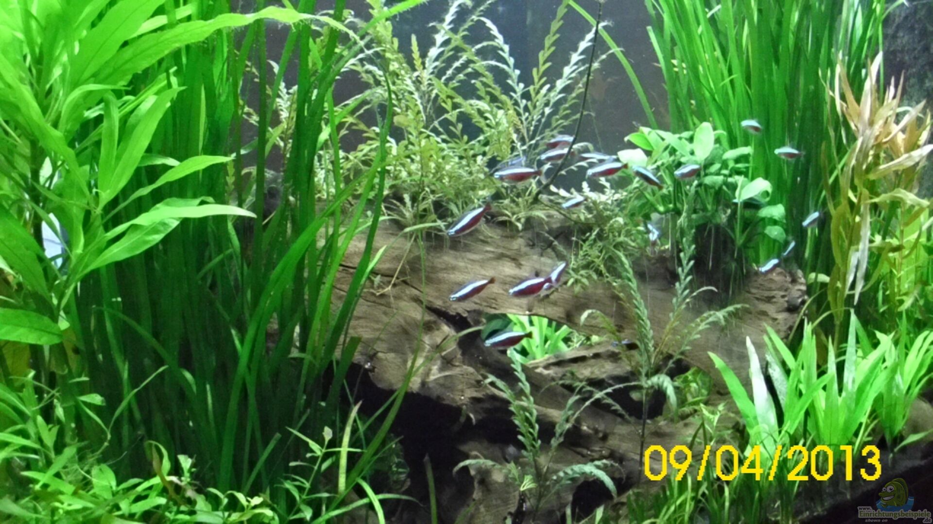 Das Aquarium wurde über meinen Händler, Aquarium Tonndorf in Hamburg, von einem Aquariumbauer als Raumteiler angefertigt. Die in den Raum hineinragende Seite ist durch 2 zusätzliche Scheiben abgeschrägt und verbessert die Optik. Viel besser als eine Rundung. Das Becken hat eine 5 cm Kiesblende und oben eine 11 cm Blende. Beides in Aluminium-Look. Das ganze steht auf einem Unterschrank in Esche schwarz. Der Schrank ist 10cm kleiner als das Becken. Das Becken steht also etwas über.Pa??t perfekt. 3D-Rückwand, [...]