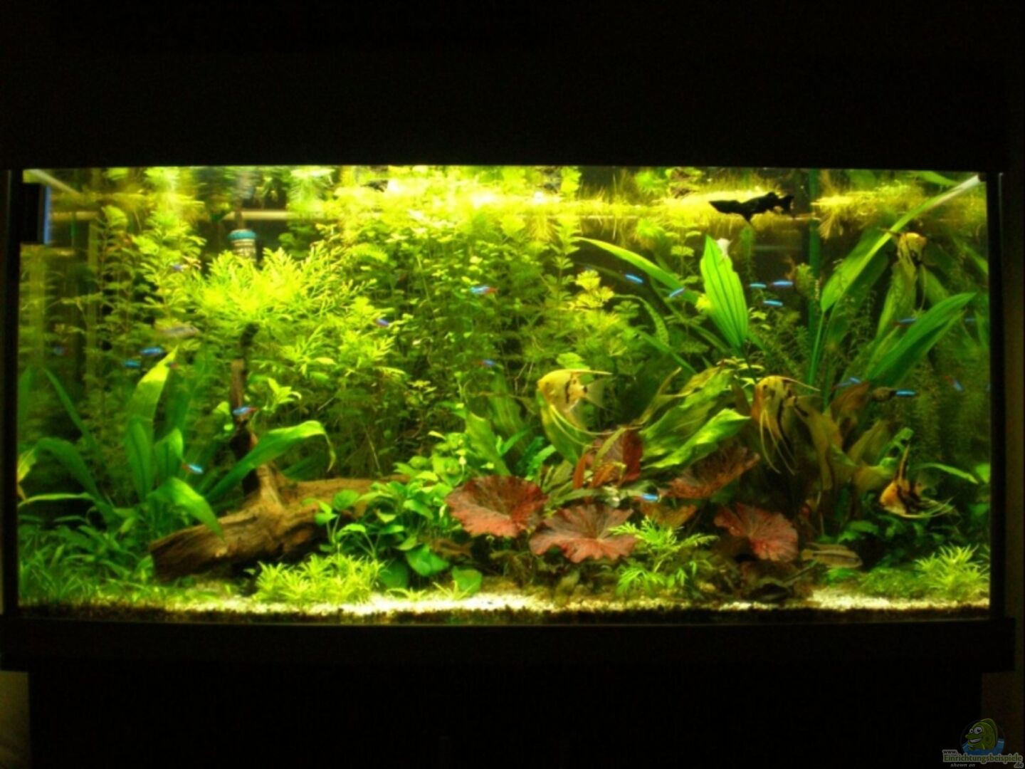 Mondlicht blaue LED`s ( Wasserdicht, auch für Unterwasser geeignet ) Rotes Sonnenlicht LED´s dunkelbraune Schrankrückwand