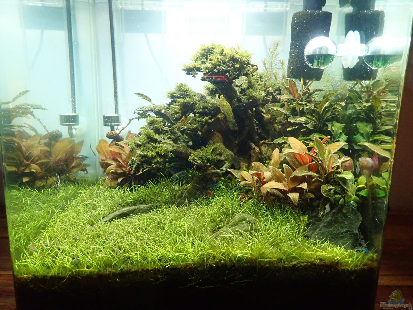 Alte Pflanzenauswahl: - Alternanthera reineckii (Rosablättriges Papageienblatt) - Hemianthus callitrichoides "Cuba" (Zwergperlkraut) - Anubias - Eleocharis pusilla (Zwergnadelsimse) - Moos (auf Wurzel) - wird noch ergänzt durch Moosbälle gedüngt wird mit dem Dennerle System Set 3-Komponenten-Düngung (V30 Complete, E15 FerActiv, S7 VitaMix) Neue Pflanzenauswahl: 1. Als Bodendecker: - Eliocharis sp. 'mini' (Mini-Nadelsimse) - Eliocharis [...]