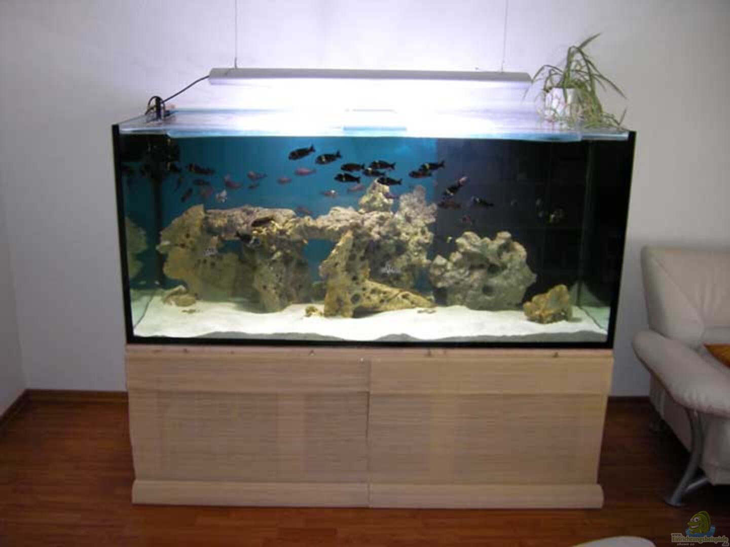 eingeklebtes Filterbecken, 60 cm breit, 15cm tief und 80 hoch.Jeweils oben und unten fehlt eine Ecke, dort wurde ein Lochblech eingeklebt, somit eine Absaugung unten und eine an der Oberfläche.