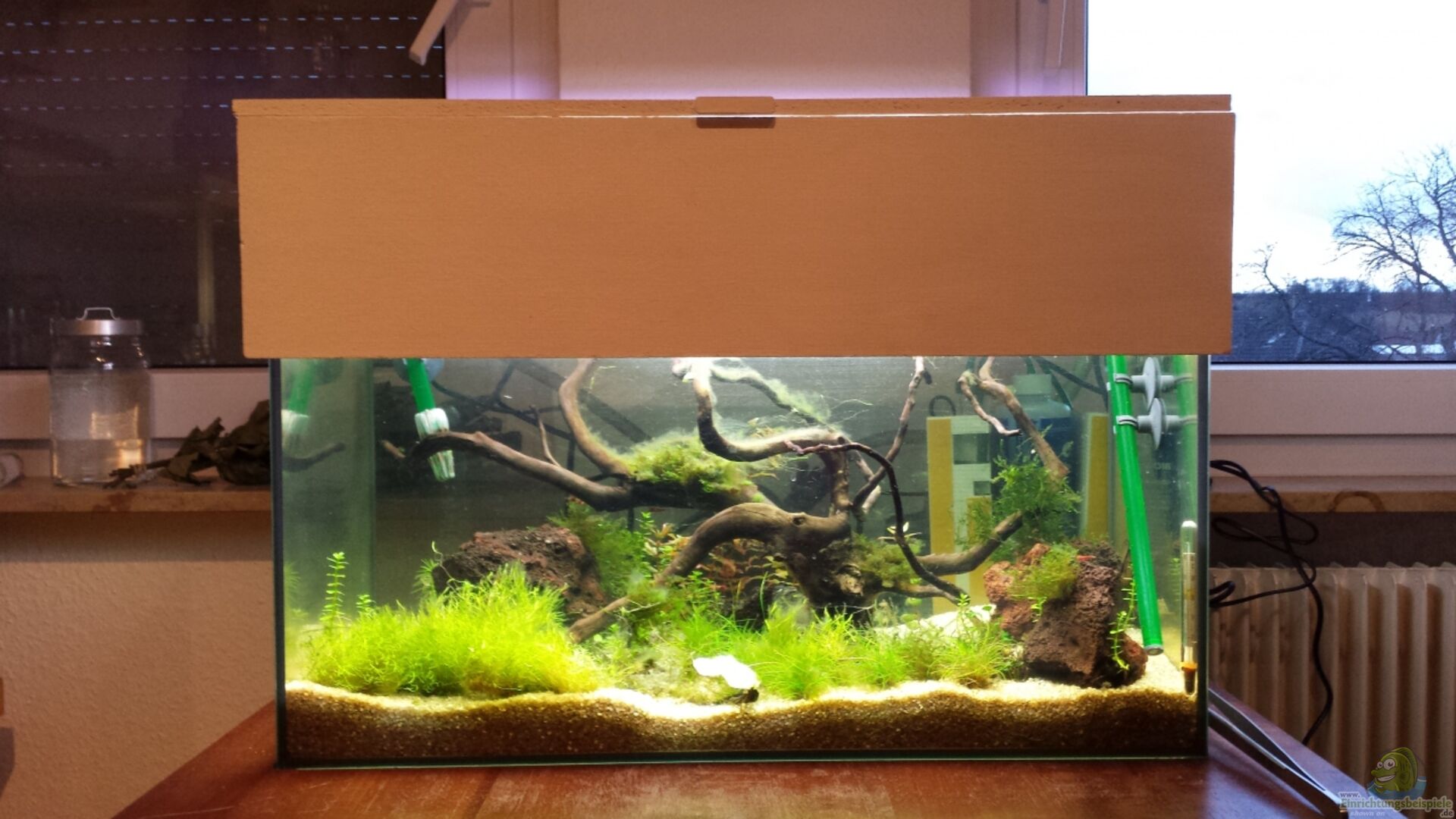 Selbstgebaute Abdeckung. Abdeckung besteht aus Spanplatten, welche mit Acryllack wei?? gestrichen sind. Beleuchtung wird mit dem Vorschaltgerät Glo A1573 Glomat betrieben.