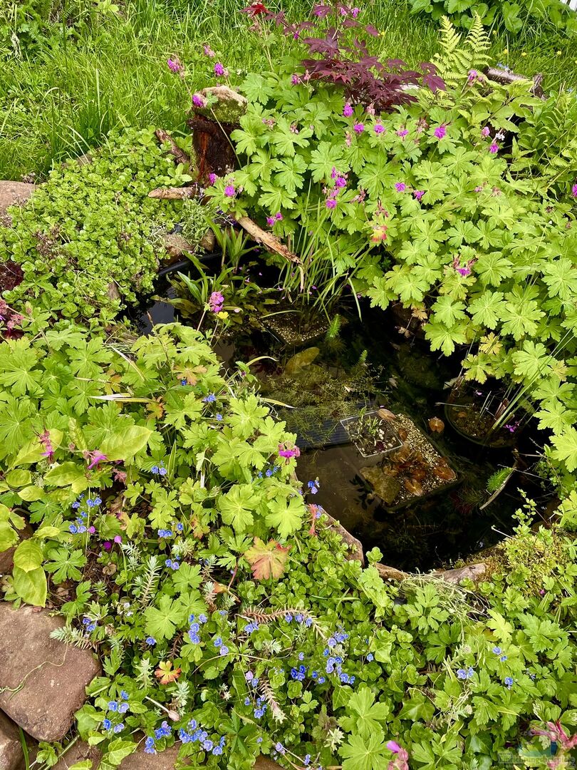 Im Winter wird der Teich mit Doppelstegplatten abgedeckt….daher läuft der Filter das ganze Jahr durch und es kommt noch Licht in den Miniteich.