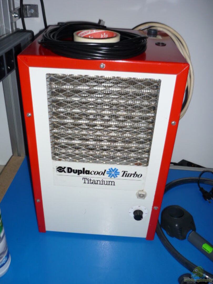 Steuerzentralle von GHL: ProfiluxPlus 3 Kühlaggregat von Dupla: Duplacool Turbo Titanium Boden-Fluter 100W von Dennerle, Stabheizer im Filtersumpf
