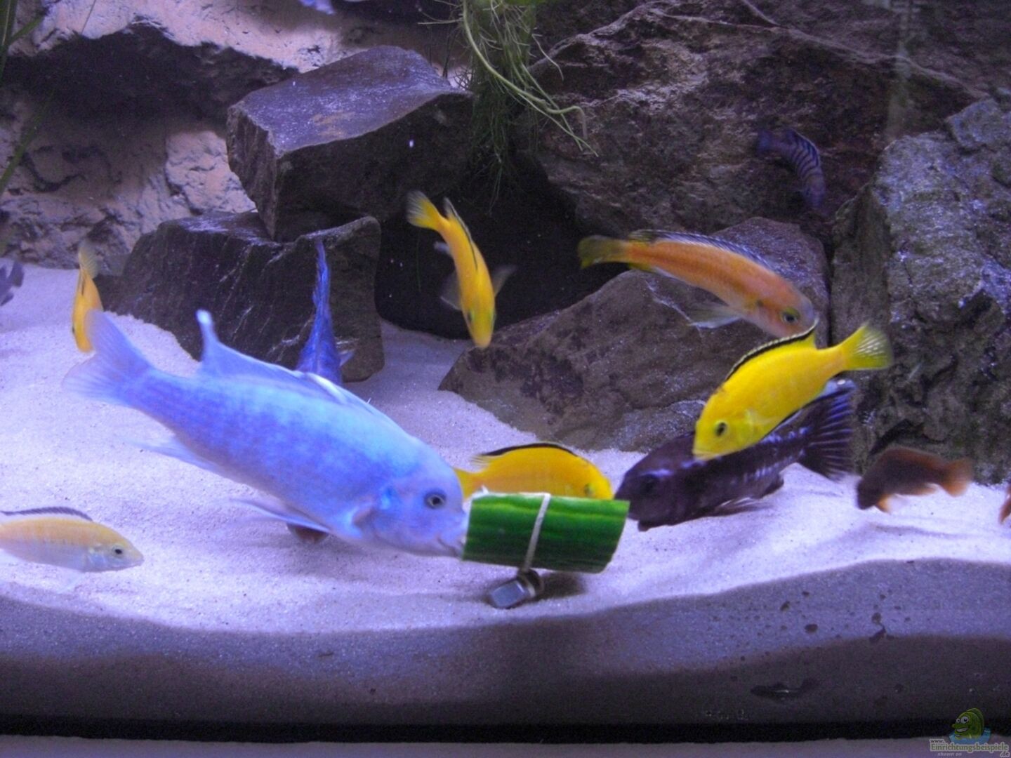 Melanochromis johannii maingano (1m/1w) Labidochromis caeruleus (1m/6w) Labidochromis Hongi red top (2m/4w) Protomelas taeniolatus (1m/2w) Iodotropheus sprengerae (2m/4w) Cynotilapia afra cobue (2m/4w) Pseudotropheus "Acei" (5 Jungfische, Geschlechter noch unbekannt) Metriaclima estherae -rot-rot- (6 Jungfische, Geschlechter noch unbekannt)
