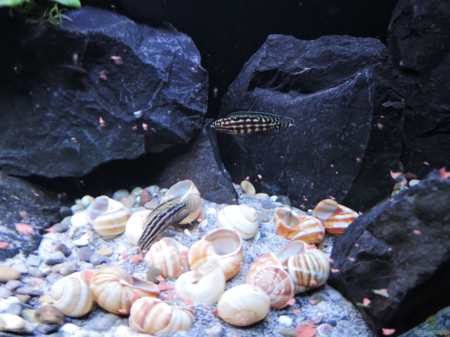 4.4 (viele Jungtiere) Neolamprologus similis: Der Lebensraum des Breitstreifen-Schneckenbuntbarschs sind Sand- und Schlammböden mit ihren zahlreichen Schneckenhäusern. Leicht kann man den Breitstreifen-Schneckenbuntbarsch (Neolamprologus similis) mit dem Neolamprologus multifasciatus verwechseln. Die beiden Fische sehen sich sehr ähnlich, auch im Verhalten unterscheiden sie sich kaum. Daher auch der lateinische Name ??? similis bedeutet ähnlich. Im [...]