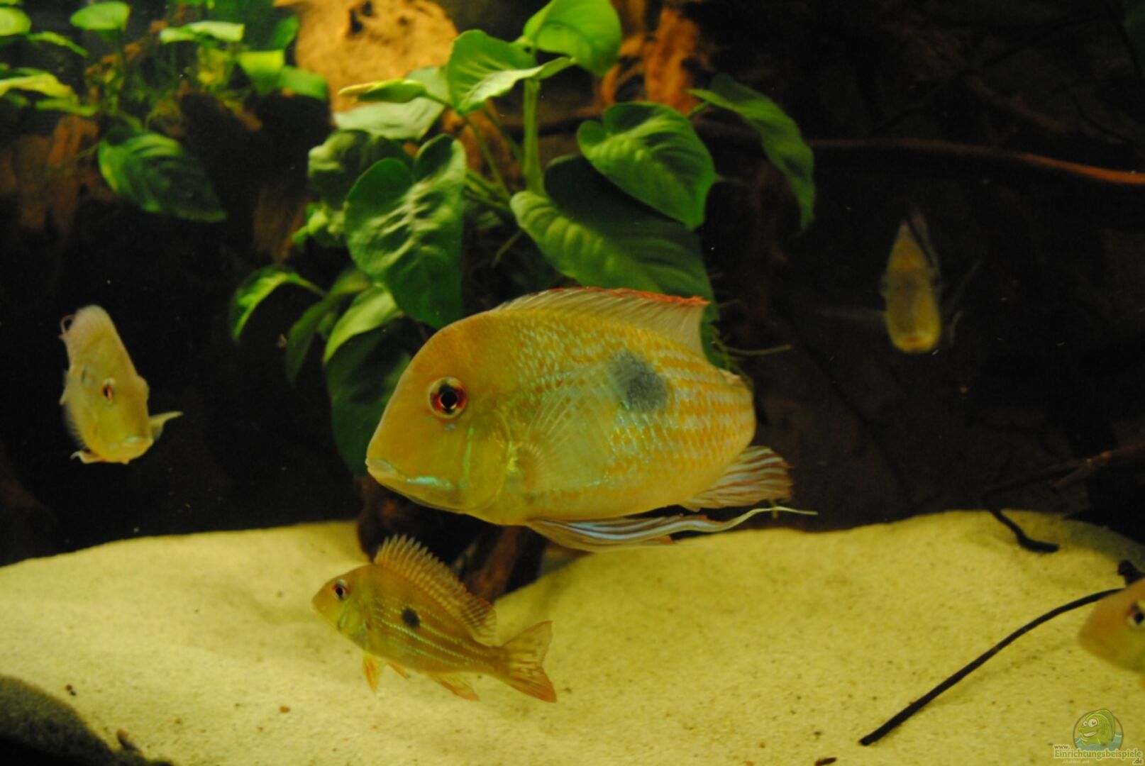 - 4 Geophagus megasema (wahrscheinlich 2/2; 17-24 cm) Quelle: ajot (geophagus.org) Erstbeschreibung:Heckel, 1840 wissenschaftlicher Name:Geophagus magasema Namensbedeutung:´megasema´ = mit gro??en Fleck weitere Bezeichnungen:- Herkunft/Fundorte:Rio Gaupore, Rio Urupa, Rio San Martin typische Merkmale:gro??er, runder Lateralfleck, ohne Kiemendeckelstrich Grö??e:bis ca. 23cm Fortpflanzung:larvophile Maulbrüter Bemerkungen:aquaristisch wenig bekannt. Eigene Beobachtungen: [...]