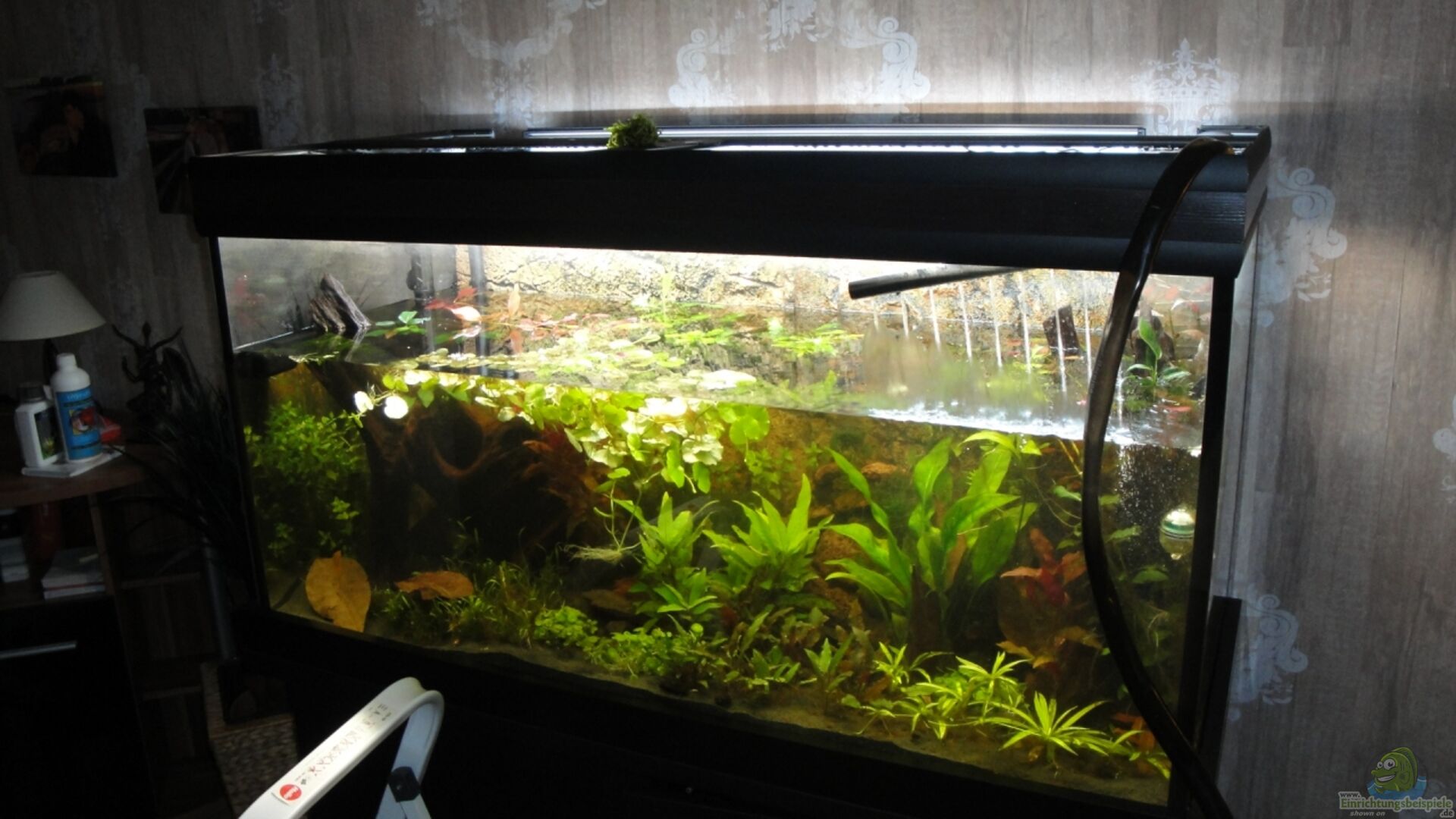 Komplett Aquarium von Meduza6, Unterschrank Wenge mit extra dicken Platten 28mm in Schreinerqualität, 2 Türen mit Klicksystem, Kiesblende in schwarz. Abdeckung Aluminium mit Dekorstreifen in Wenge. Becken 10mm Floatglas mit Druckverklebung und 10 Jahren Garantie, 2x T5 Leuchtbalken "Aqua" mit elektronischem Vorschaltgerät.