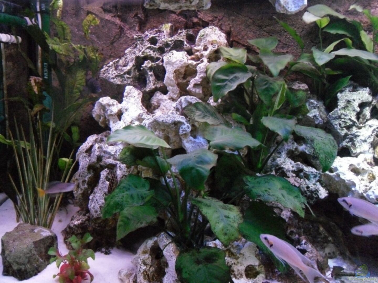 Delta-Becken mit einer Länge von 120cm. Glasstärke: 8 mm Wulstverklebt mit schwarzem Silikon, mit Innenschutznaht. Unter dem Aquarium liegt zum Schutz gegen Unebenheiten eine 5mm starke Gummimatte. Rückwand: Nur 10mm starke 3-D Rückwand von Back To Nature Slimline mit Silikon eingeklebt. Mit Unterschrank in dem die Technik unter gebracht ist. Abdeckung in der gleichen Farbe wie der Unterschrank.