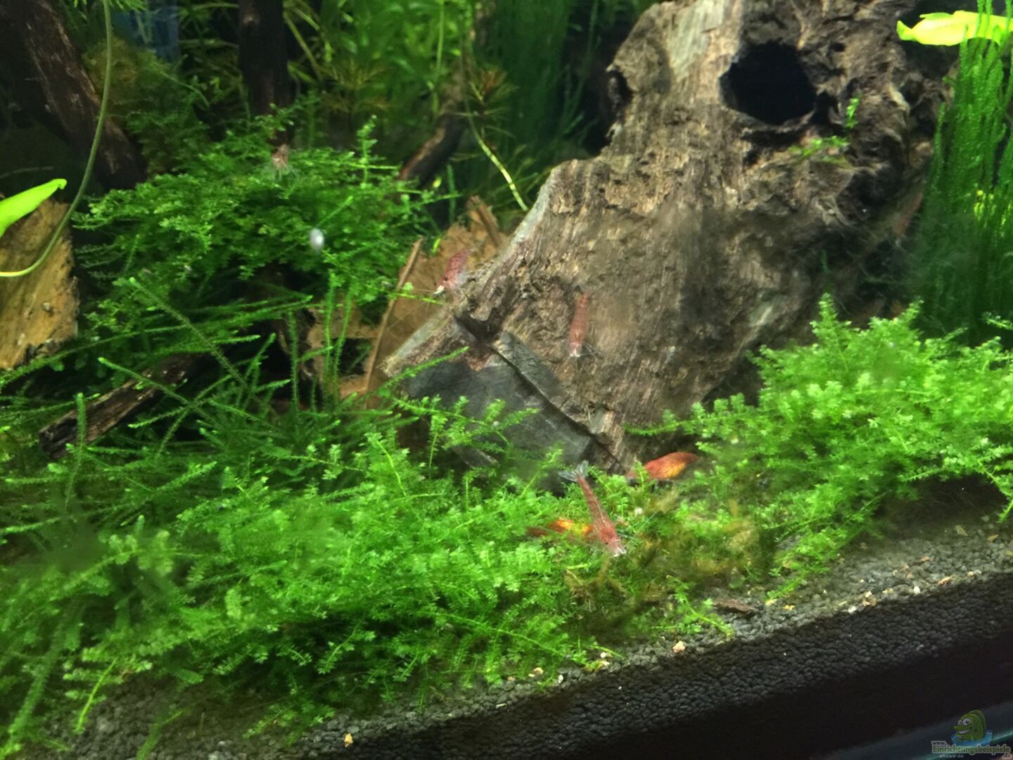 mind. 40 Red Fire Garnelen (Neocaridina davidi) - darunter mind. 20 Junggarnelen 10 Fische der Gattung Boraras (es sind wohl zwei Arten, vermutlich Boraras brigittae und Boraras merah, Bilder folgen noch). sehr viele Blasenschnecken (angefangen hat es mit 2 ausgewachsenden Blasenschnecken aus meinem gro??en Aquarium). Anscheinend habe ich eine einzelne Posthornschnecke mit den Pflanzen "eingeschleppt", die sich jetzt auch vermehrt hat.