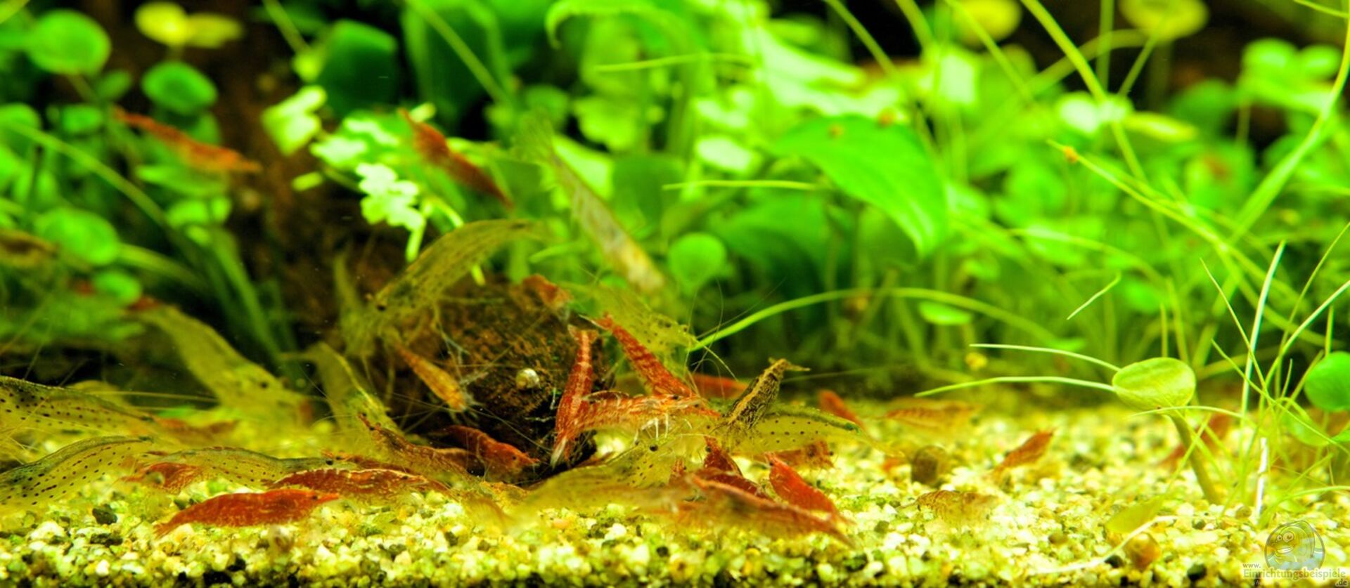 Fische: - 40-45 Perlhuhnbärblinge (Danio margaritatus) Häufig liest man, dass die Perlhühner sehr scheu sind und sich nur verstecken. Hier sind sie aktive Schwimmer, die gerne an die Frontscheibe kommen wenn man man ans Aquarium tritt um auf Futter zu hoffen, und auch bei vollem Licht (0, 78 Watt/Liter) im freien Schwimmraum bis dicht unter der Wasseroberfläche unterwegs sind. Allerdings steht das Becken auch an einer ruhigen Stelle. Die Perlhühner danken es hin und wieder mit Nachwuchs, [...]