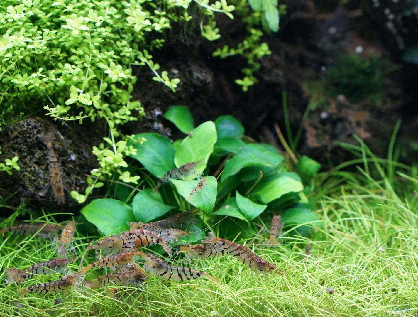 - mittlerweile unzählige Tigergarnelen (Caridina cf. cantonensis) - Posthornschnecken - einige Anthrazit-Napfschnecken - vorrübergehend 16 Perlhuhnbärblinge, da ich mein 200l Becken aufgelöst habe