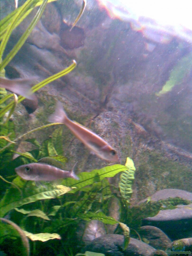 Besatz: Julidochomis transcriptus ( 1m/1w ) + Nachswuchs Lamprologus leleupi (1m/1w) + Nachwuchs 1x Epalzeorhynchus siamensis ( Putzkolonne) Ich wei?? natürlich, dass die nicht wirklich passt aber der geht´s richtig gut im Becken Altbestand! 1/4 Cyrichromis leptosoma Nachwuchs in eigenem Becken 5 Anentome helena + Nachwuchs 2x Synodontis Multip.( Wahrscheinlich hybriden da leichte farbabweichung)
