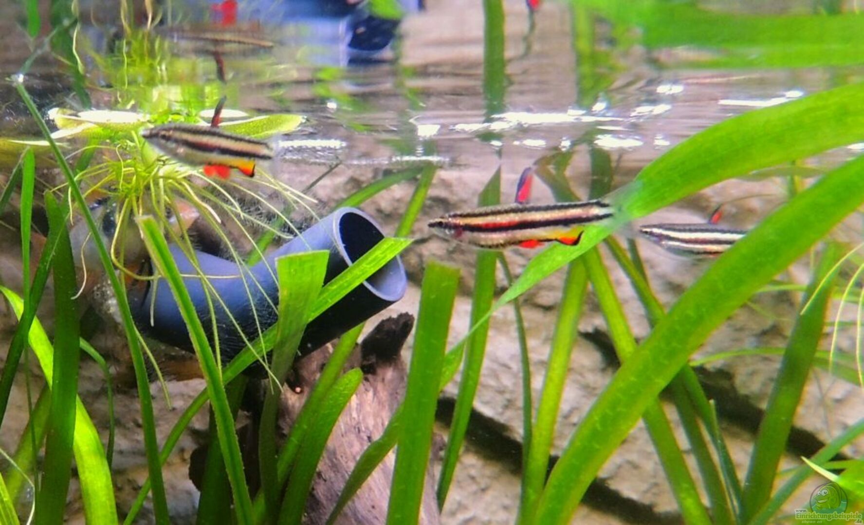 2 W Microgeophagus ramirezi (Schmetterlingsbuntbarsche) 10 Nannostomus marginatus (Zwergziersalmer) 5 Geweihschnecken 4 Amanogarnelen