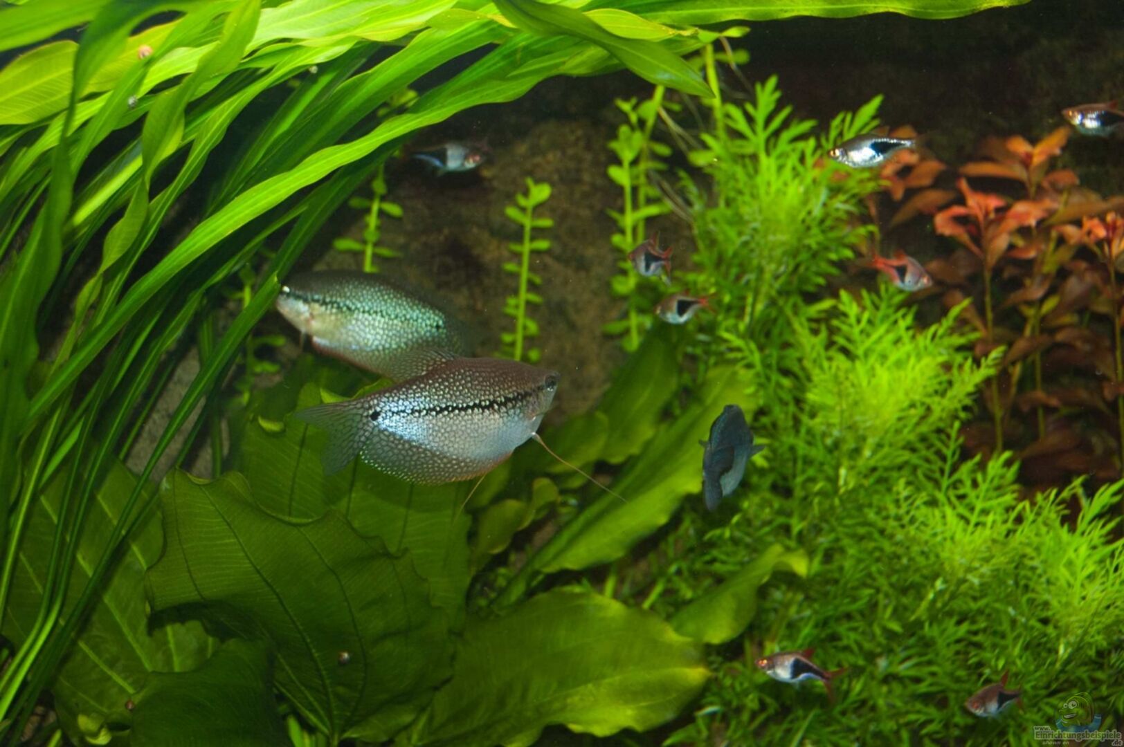 13 Keilfleckbärbling - Trigonostigma heteromorpha 1w/1m Mosaikfardenfisch -Trichogaster leerii Wir hatten bedenken wie sich die Fadenfische mit den lebhafteren Regebogenfischen vertragen. Klappt aber gut. Wenn es ihnen zu lebhaft wird, verziehen sie sich in die Büsche zurück. 3w/3m Kutubu Regenbogenfisch - Melanotaenia lacustris sollen um 2 ergänzen werden, wenn Händler des Vertrauens wieder vorrätig hat. 1 Langflossen Störwelz - Sturisoma festivum 3 Panzerwelze - Corydoras [...]