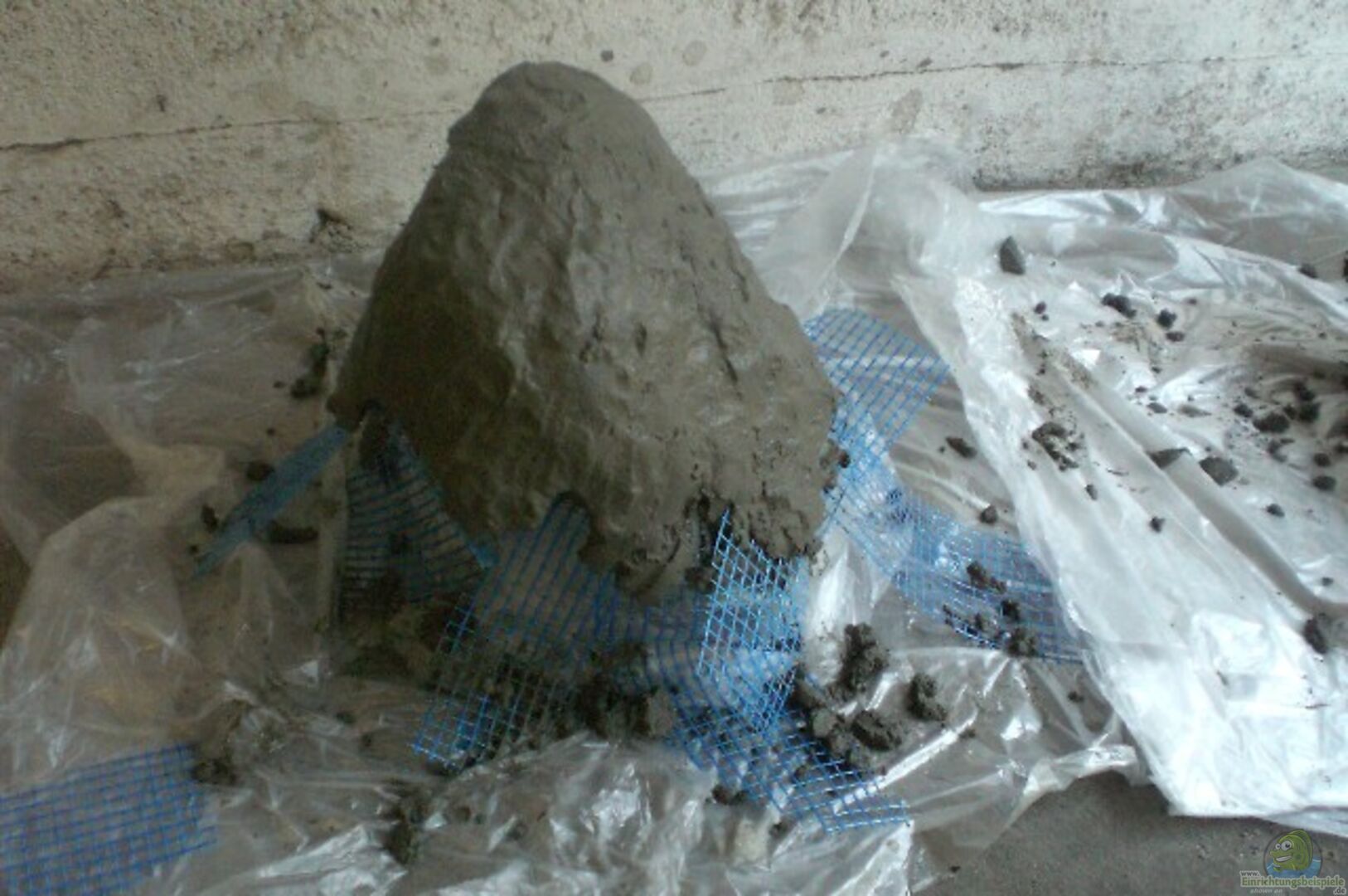 Die Einrichtung besteht aus selbstgebauten Felsenelementen. Alle Teile sind hohl und können als Schwimmraum und Höhlen genutz werden.
